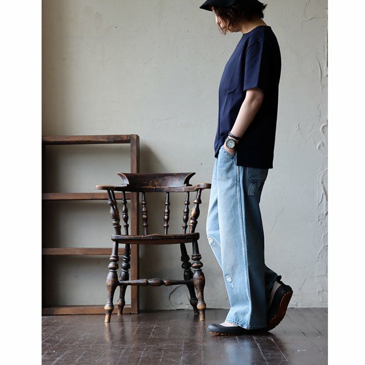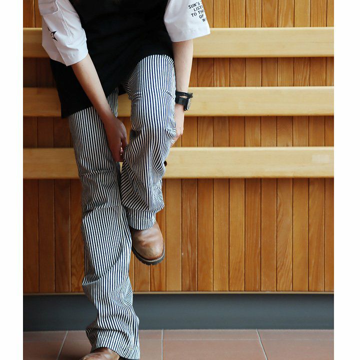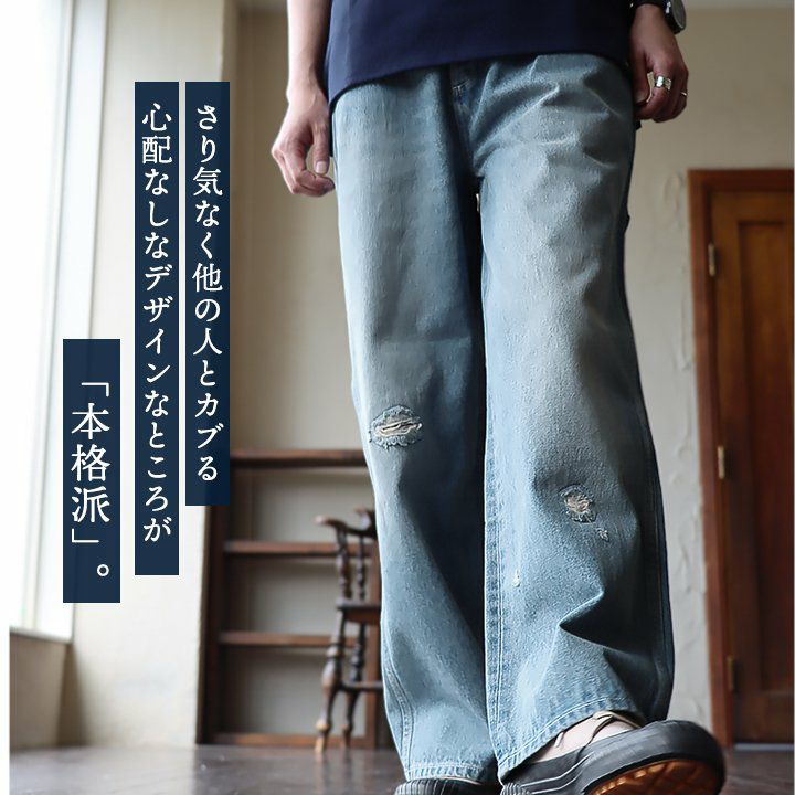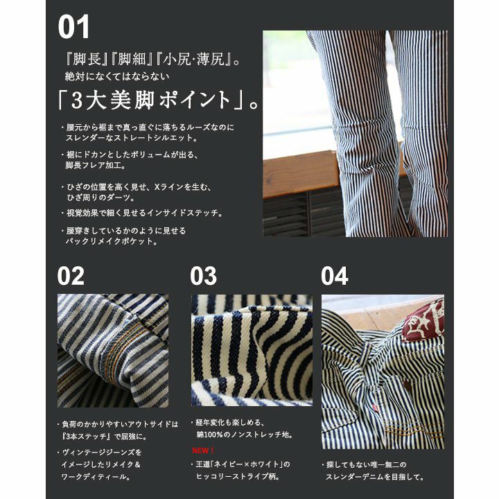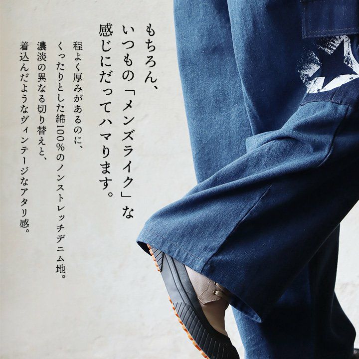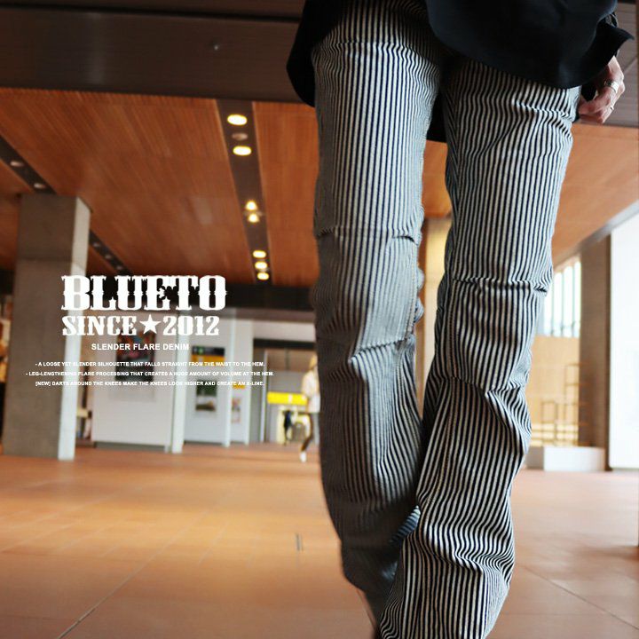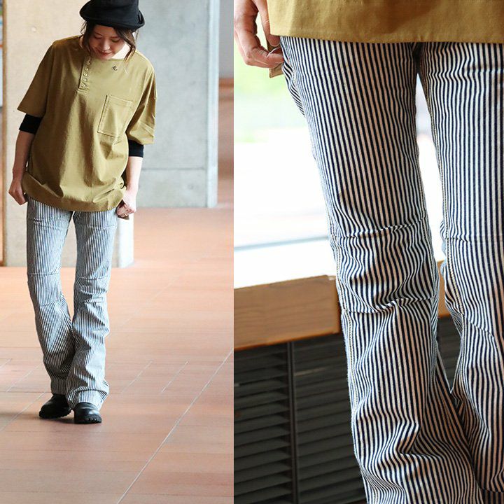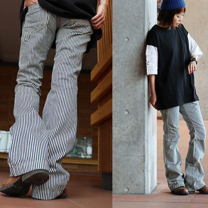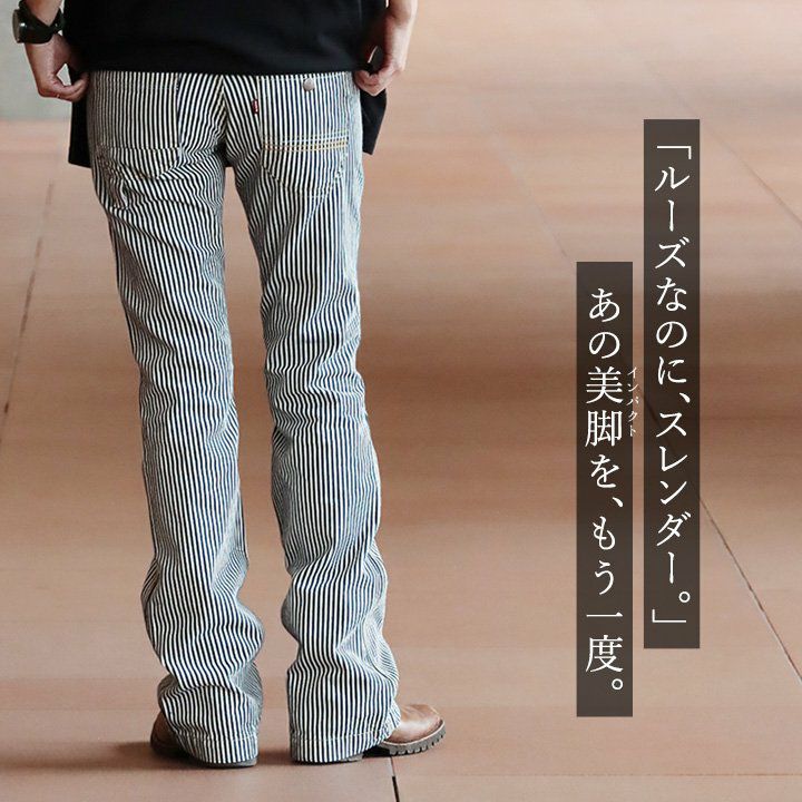 「ルーズなのに、スレンダー。」あの美脚を、もう一度。 脚長 ヒッコリー デニムパンツ レディース ストレート デニム フレア アメカジ バイク スリム ルーズ スレンダーシルエット ペインター 膝ダーツ ローライズ カジュアル パティ BLUETO ブルート
