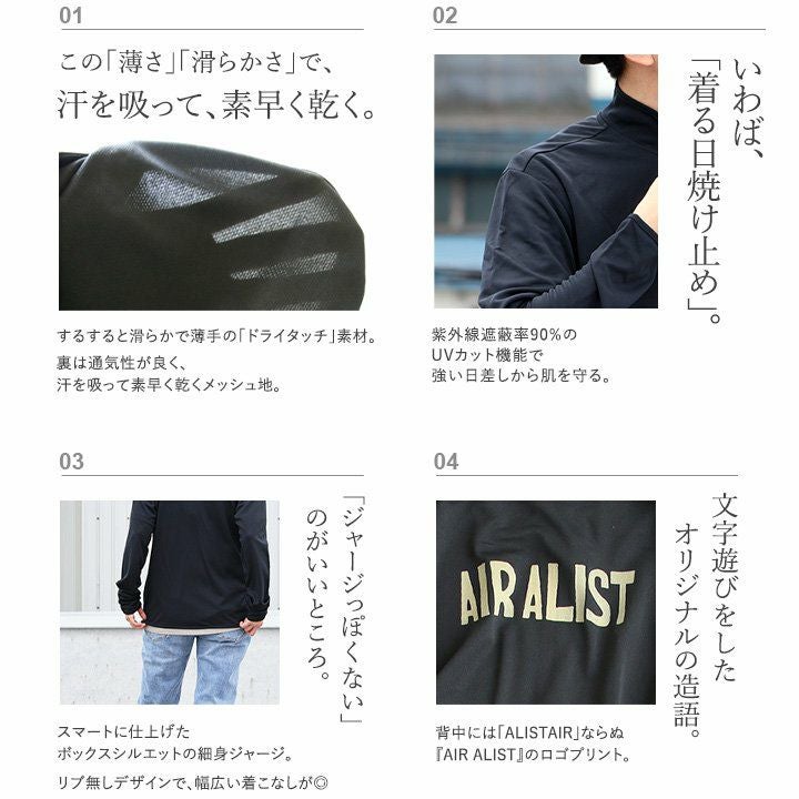 「着る、日焼け止め」。しかも、「涼しく、ドライ」。 ジャージ ラッシュガード 長袖 メンズ レディース uvカット ロゴ バック プリント 吸水 速乾 涼しい 軽い ドライ タッチ 紫外線防止 薄手 おしゃれ ジップアップ 春 夏 カジュアル パティ ALISTAIR アリステア