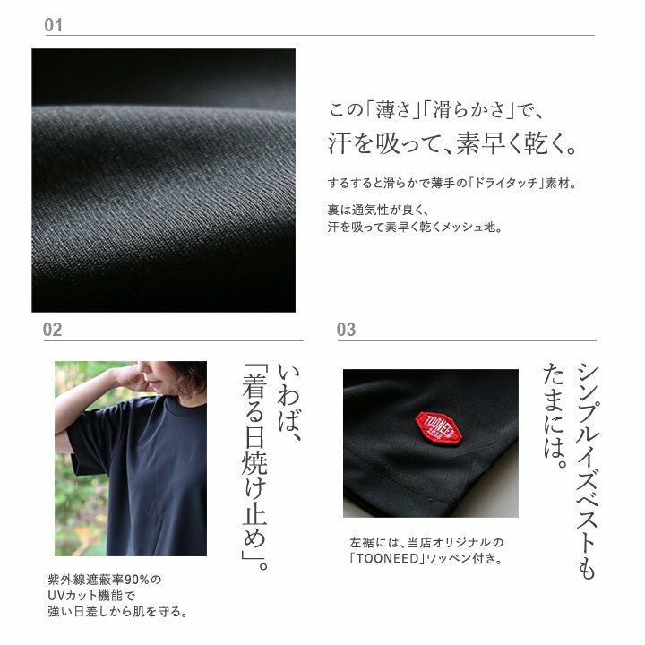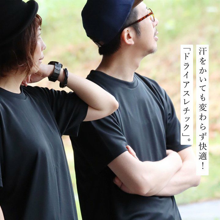 汗をかいても変わらず快適!「ドライアスレチック」。 【メール便50】 涼しい tシャツ 半袖 メンズ レディース 夏 ドライ UVカット 吸汗 伸縮性 ワッペン ワンポイント すっきり ボックスシルエット 大人 カジュアル パティ TOneontoNE トーン