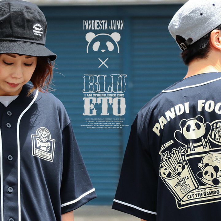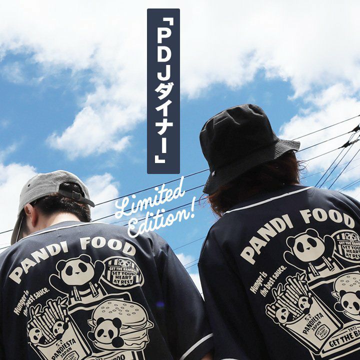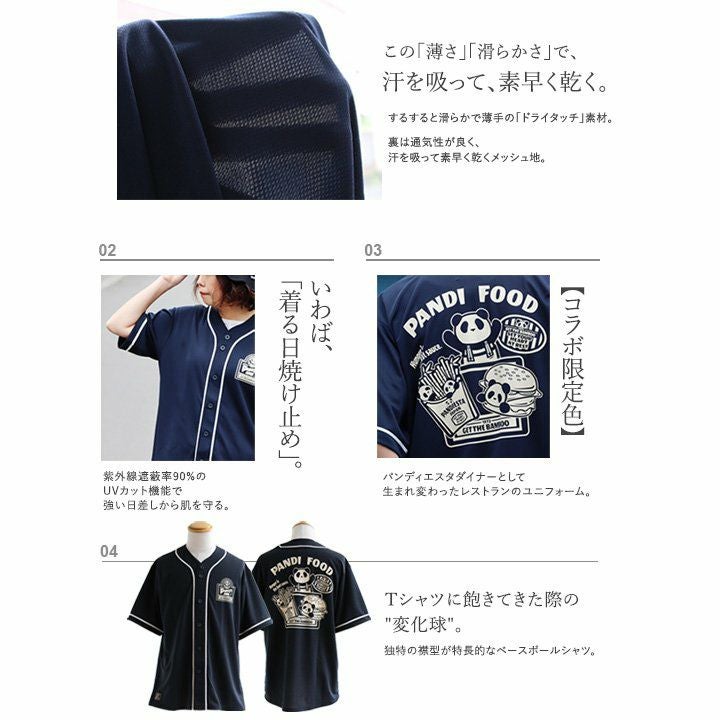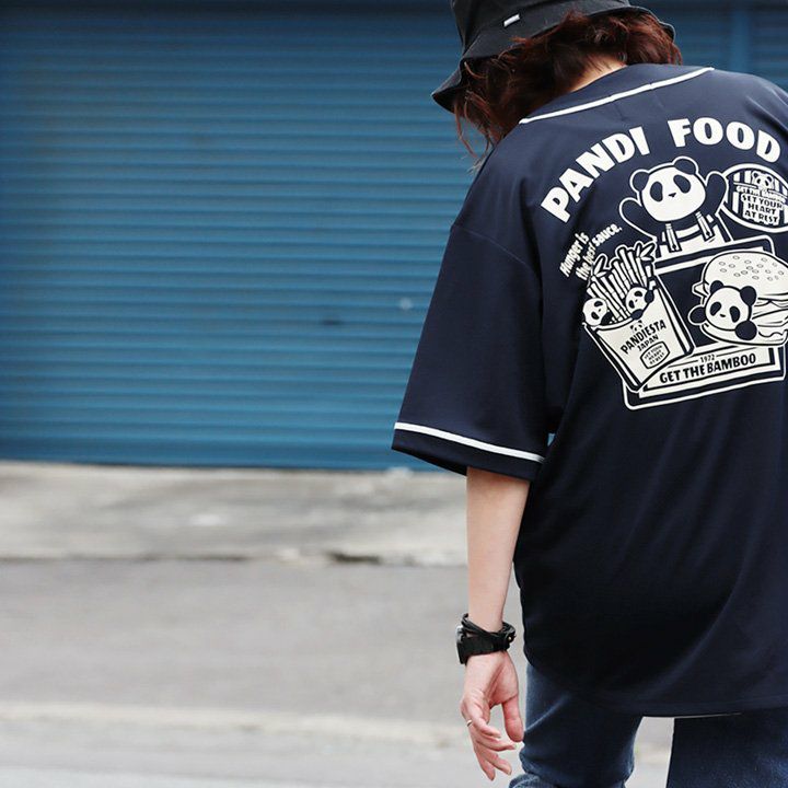 「PDJダイナー」 コラボ 限定色 涼しい tシャツ ベースボールシャツ 半袖 メンズ レディース 夏 ドライ UVカット 吸汗 伸縮性 パンダ PDJ大ナー バックプリント すっきり ボックスシルエット 大人 カジュアル パティ PANDIESTAJAPAN×BLUETO パンディエスタ