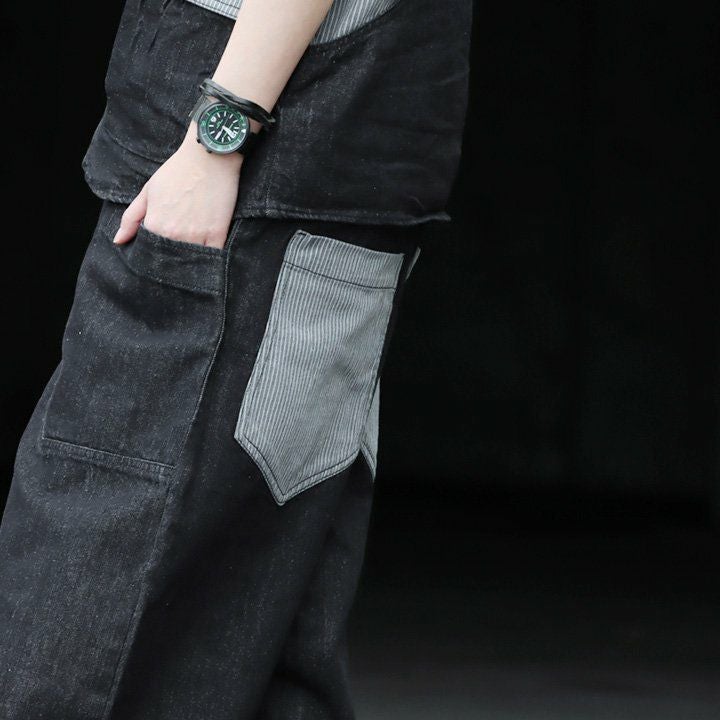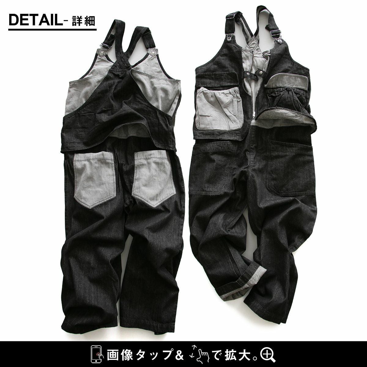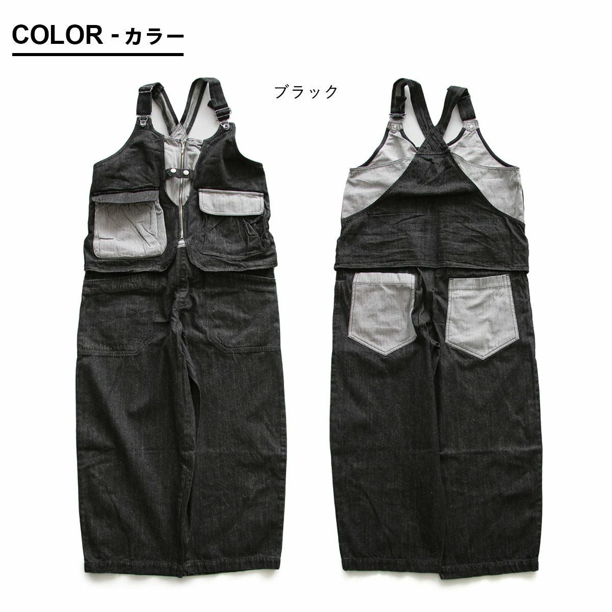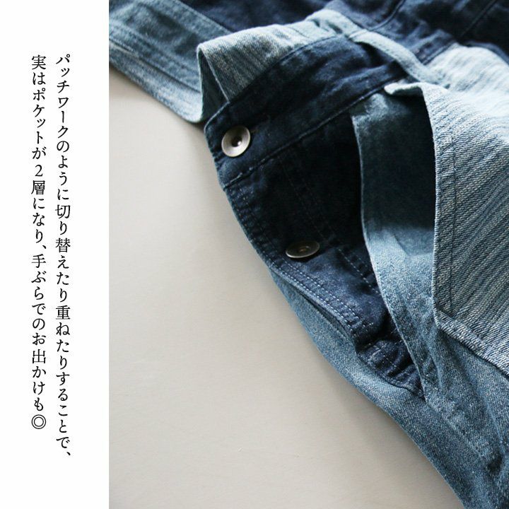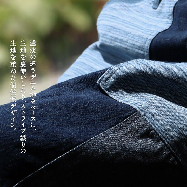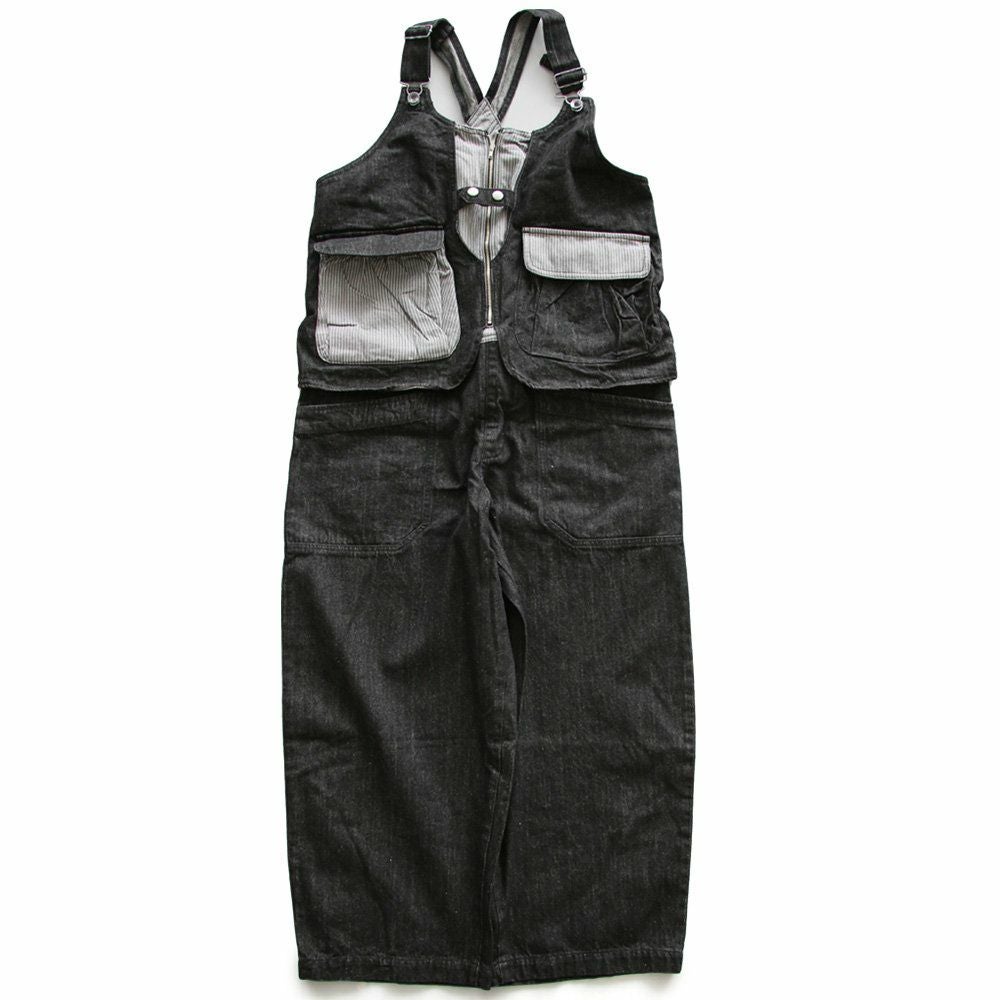 「カッコイイ」だけじゃなく、『面白い』からハマる。 サロペット パンツ ワイド ストレート ベスト 重ね着風 フェイクレイヤード ドッキング デニム ヒッコリー ストライプ 切り替え レディース メンズライク かっこいい BLUETO ブルート