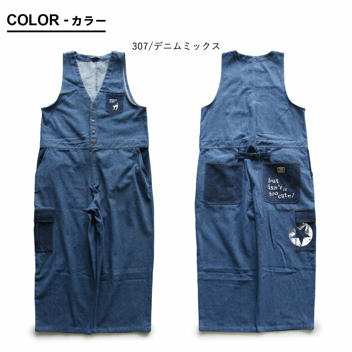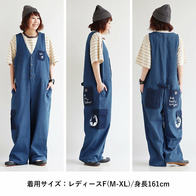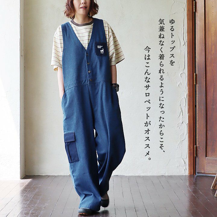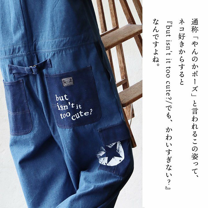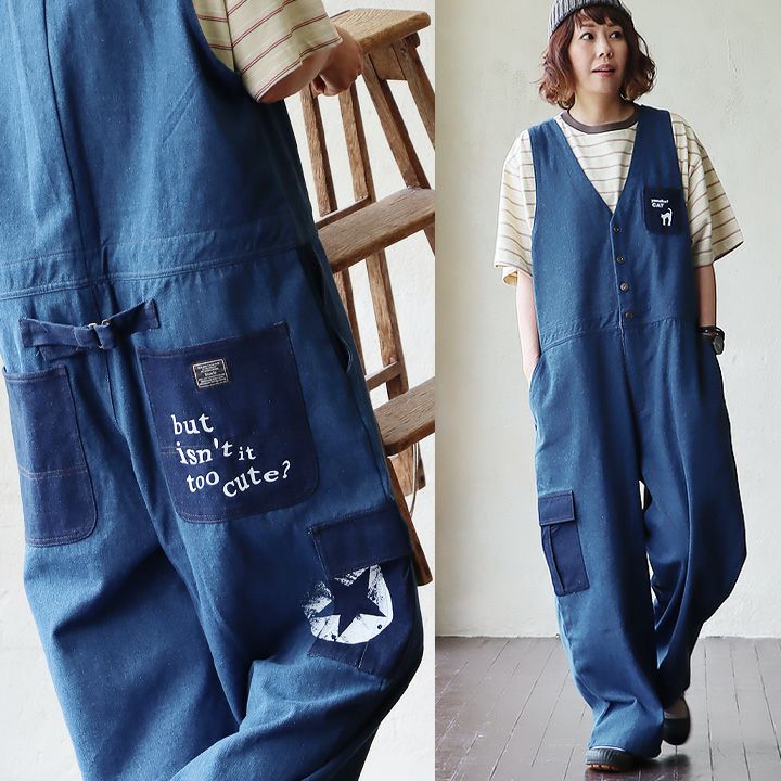 色々「だぼっとゆるい」くらいが、大人はかっこいい。 デニム サロペット ゆったり 着痩せ レディース 柔らか 綿100% コットン やんのか 猫 ねこ ネコ プリント おしゃれ 春 夏 秋 冬 重ね着 大人 カジュアル アメカジ サロペットパンツ オーバーオール クレイジー アシンメトリー カーゴポケット BLUETO ブルート