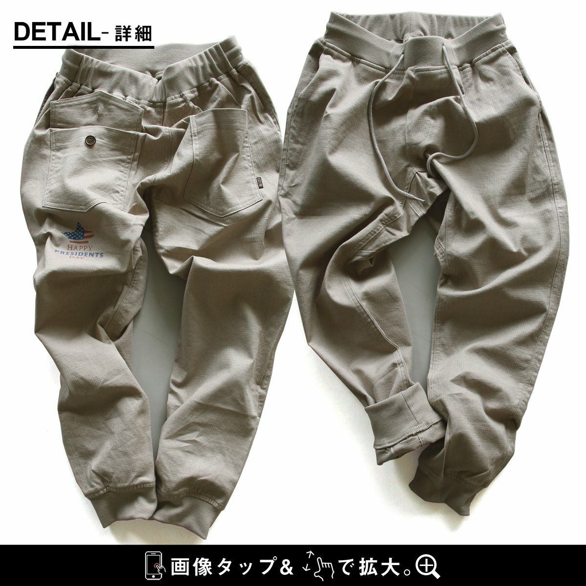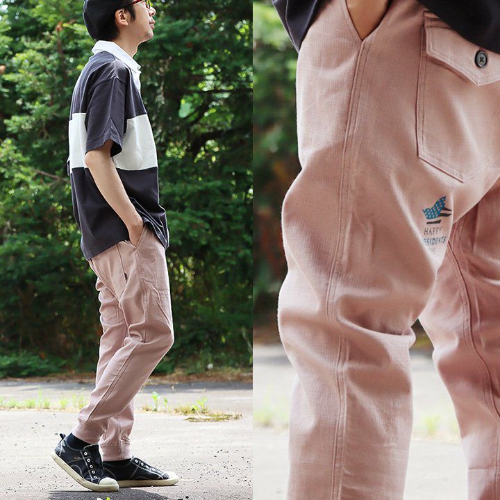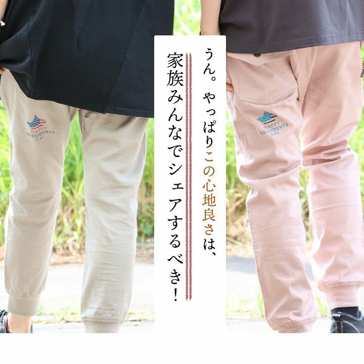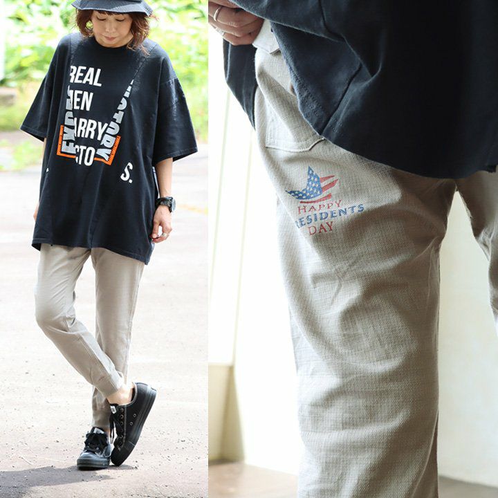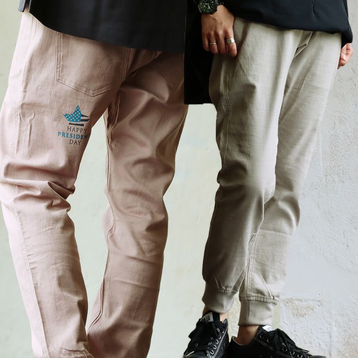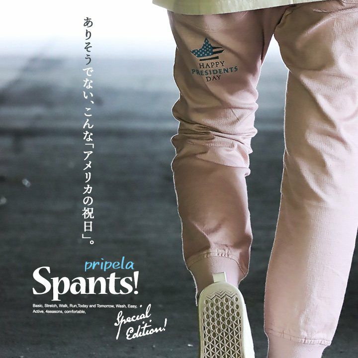 ありそうでない、こんな「アメリカの祝日」。 麻 パンツ メンズ レディース 夏 涼しい 伸びる ストレッチ 綿麻 しっかり 丈夫 ウエストゴム 裾 リブ ポケット付き バック プリント すっきり 細見え スリム テーパード カジュアル 洗える 軽い パティ Spants スパンツ