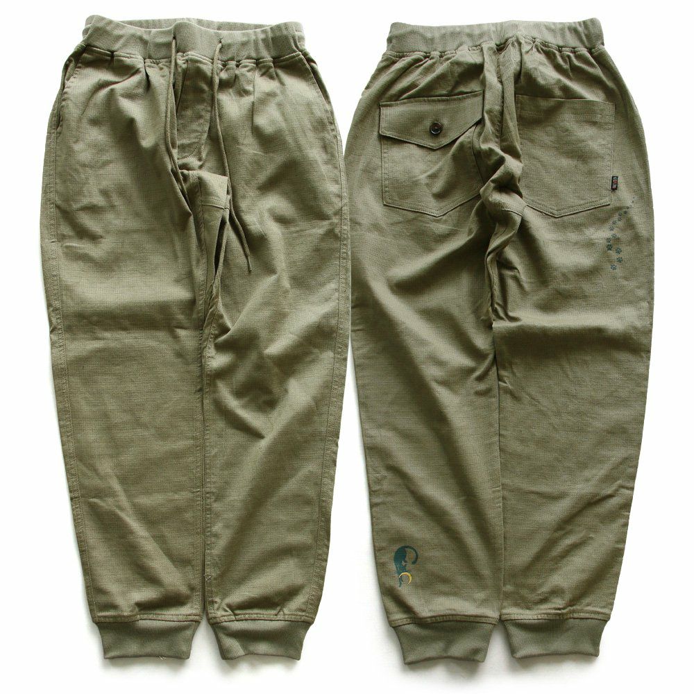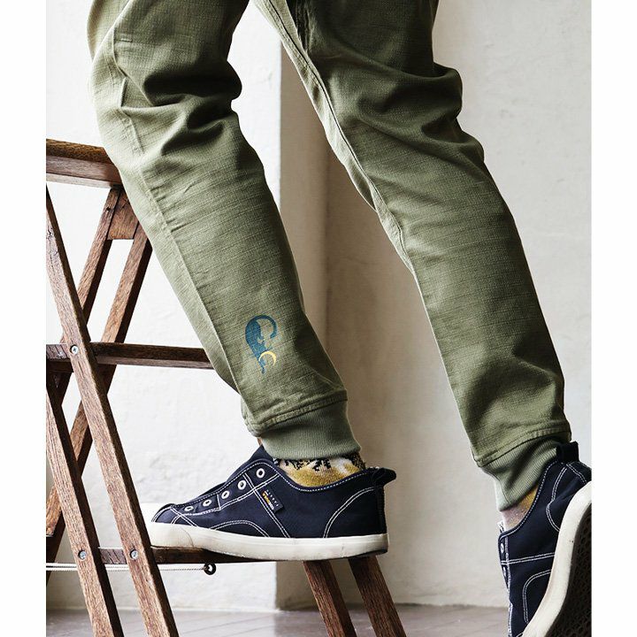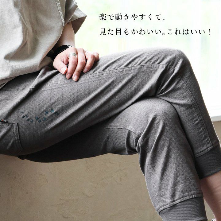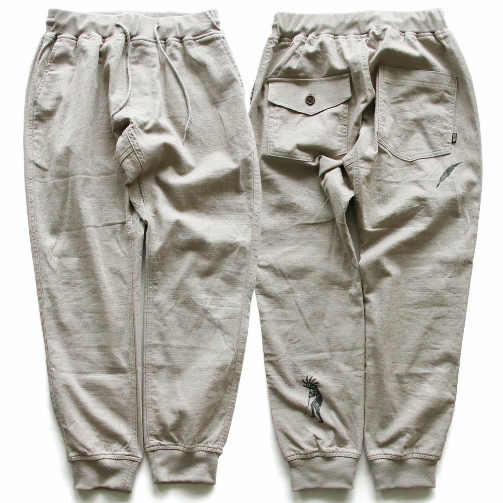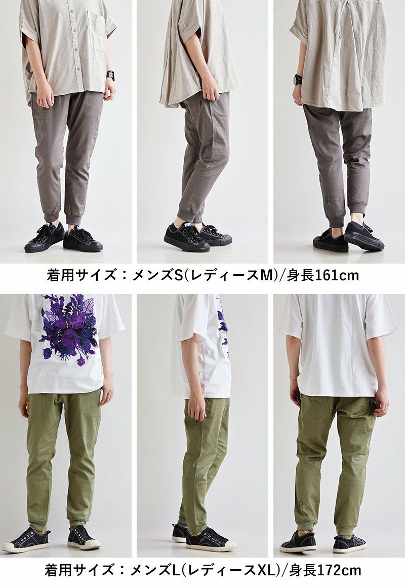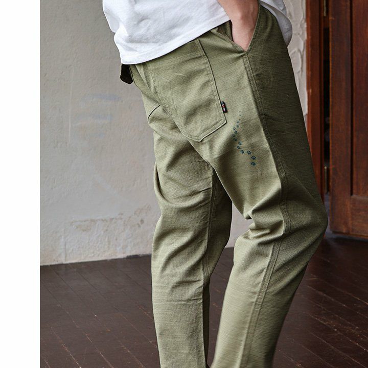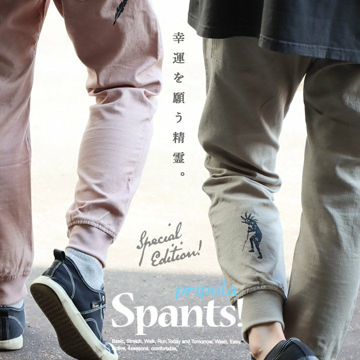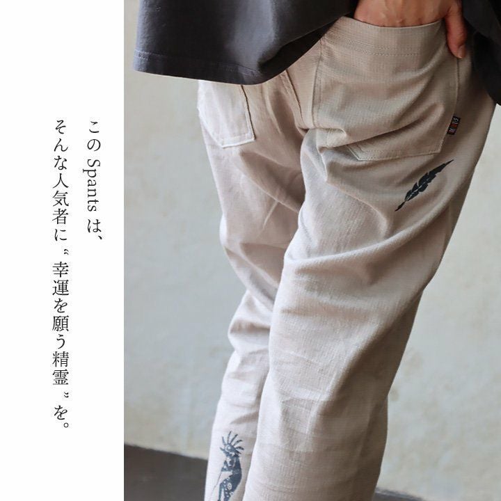 幸運を願う精霊。 麻 パンツ メンズ レディース 夏 涼しい 伸びる ストレッチ 綿麻 しっかり 丈夫 ウエストゴム 裾 リブ ポケット付き バック プリント ココペリ インディアン 精霊 すっきり 細見え スリム テーパード カジュアル 洗える 軽い パティ Spants スパンツ