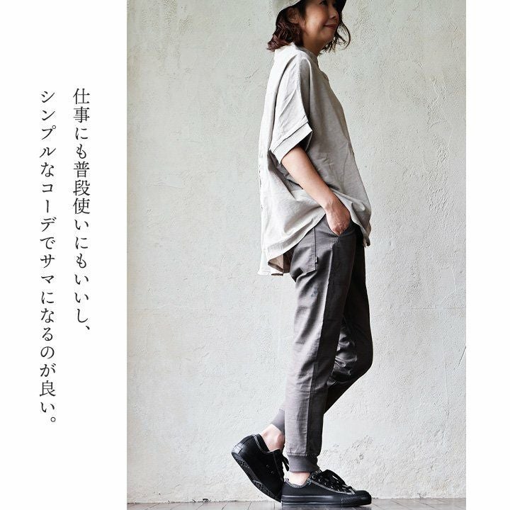 シンプルなのに遊びがあって、実はめちゃくちゃ頼れます。 【メール便50】 着痩せ tシャツ 5分袖 レディース しっかり 丈夫 綿100% コットン 二の腕 カバー ポケット 切り替え 裾コード 大きいサイズ すっきり カジュアル 夏 パティ Souple スプル