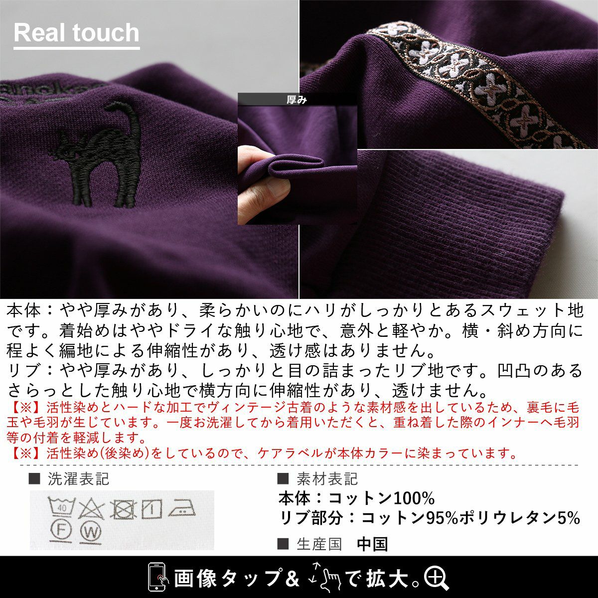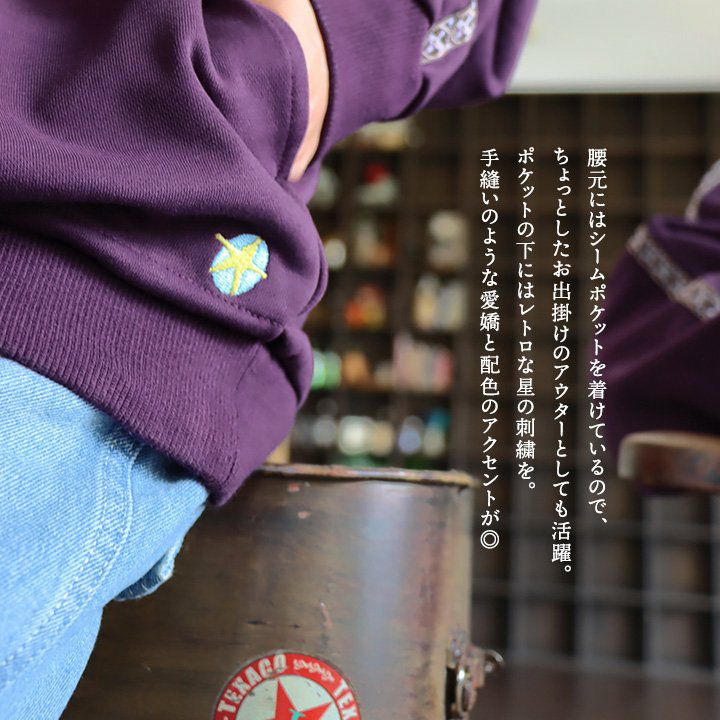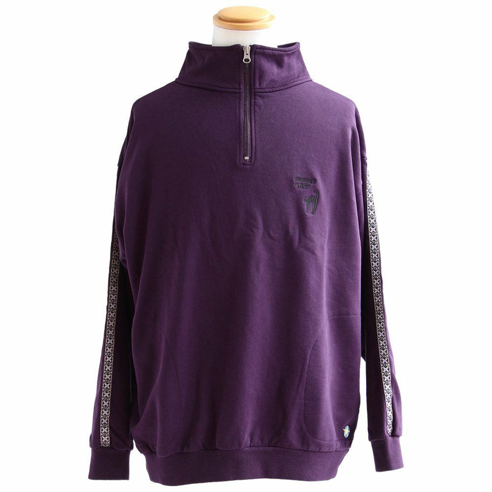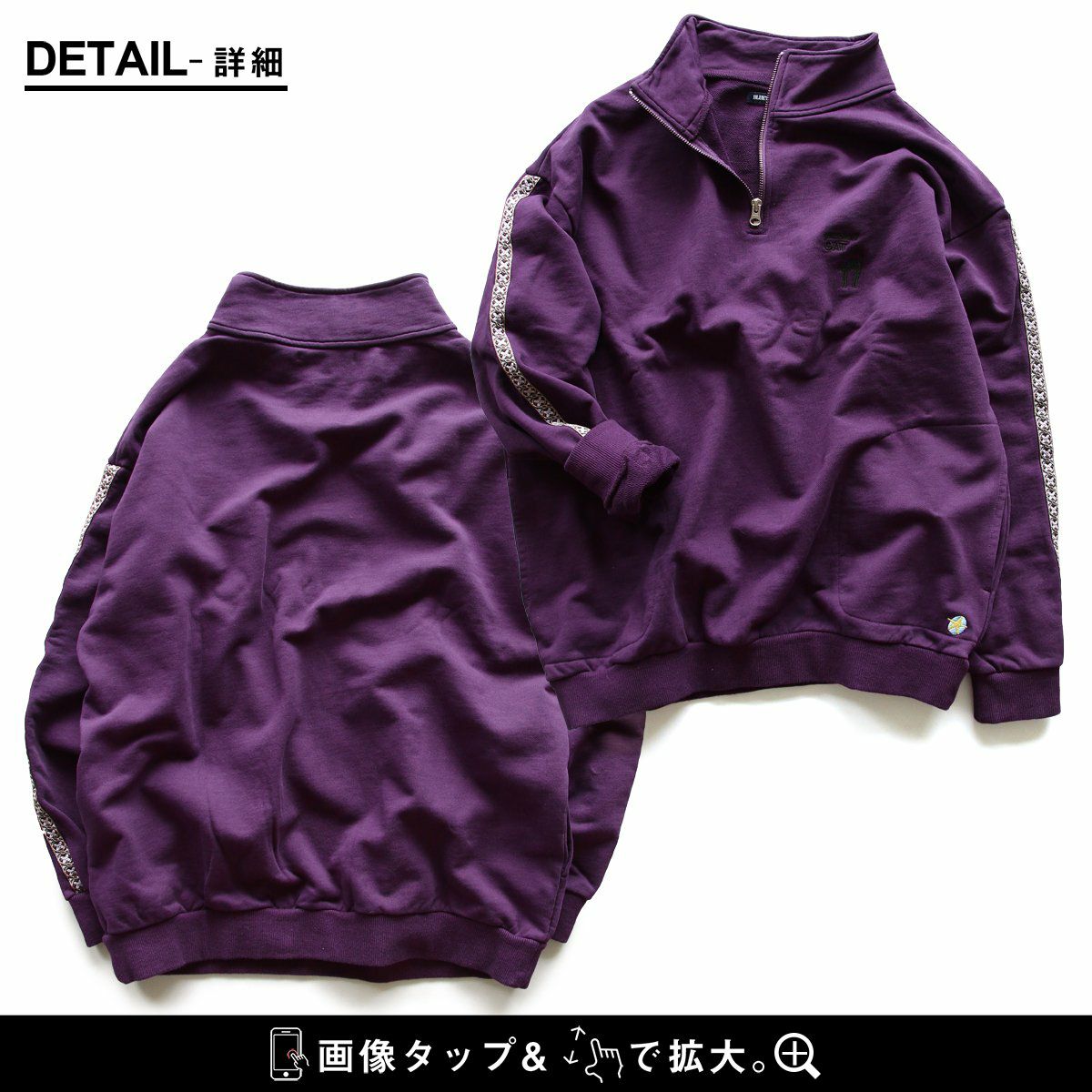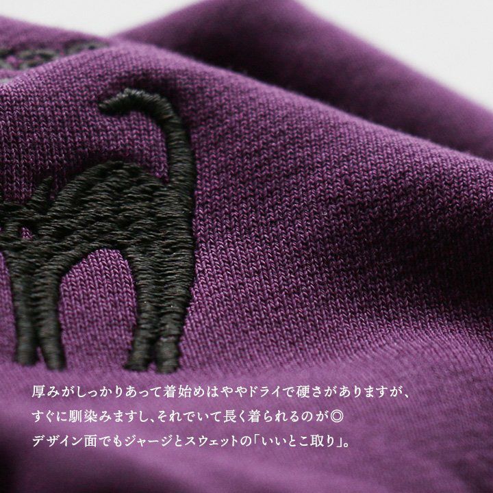 ジャージとスウェットの「いいとこ取り」。 スウェット トレーナー 長袖 ハーフジップ メンズ レディース 猫 ねこ ネコ しっかり 丈夫 綿100% 裏毛 活性染め ワイド ビッグシルエット お尻 隠れ カバー ポケット 刺繍 スエット レトロ ジャージ風 大人 カジュアル パティ BLUETO ブルート