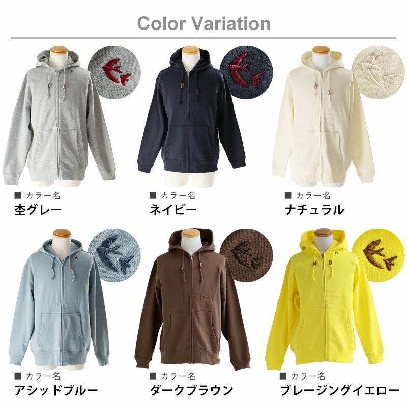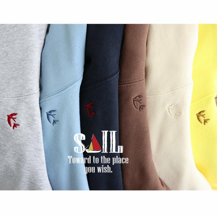 一色買うと他も欲しくなる、この「沼感」のある心地良さっ! ジップアップパーカー レディース メンズ スウェット 長袖 綿100% ジップパーカー スウェットパーカー スエット ブランド ツバメ 刺繍 春 春服 おしゃれ 柔らか 裏パイル ゆったり レザー 豚鼻 無地 シンプル グリーン 緑 PATY パティ SAIL セイル