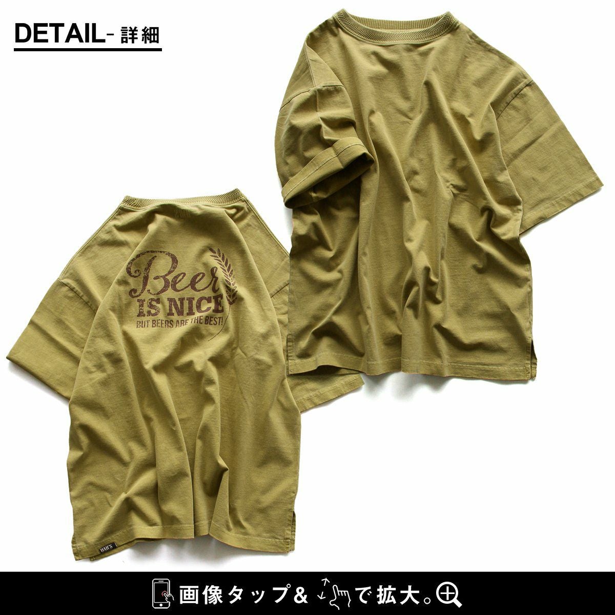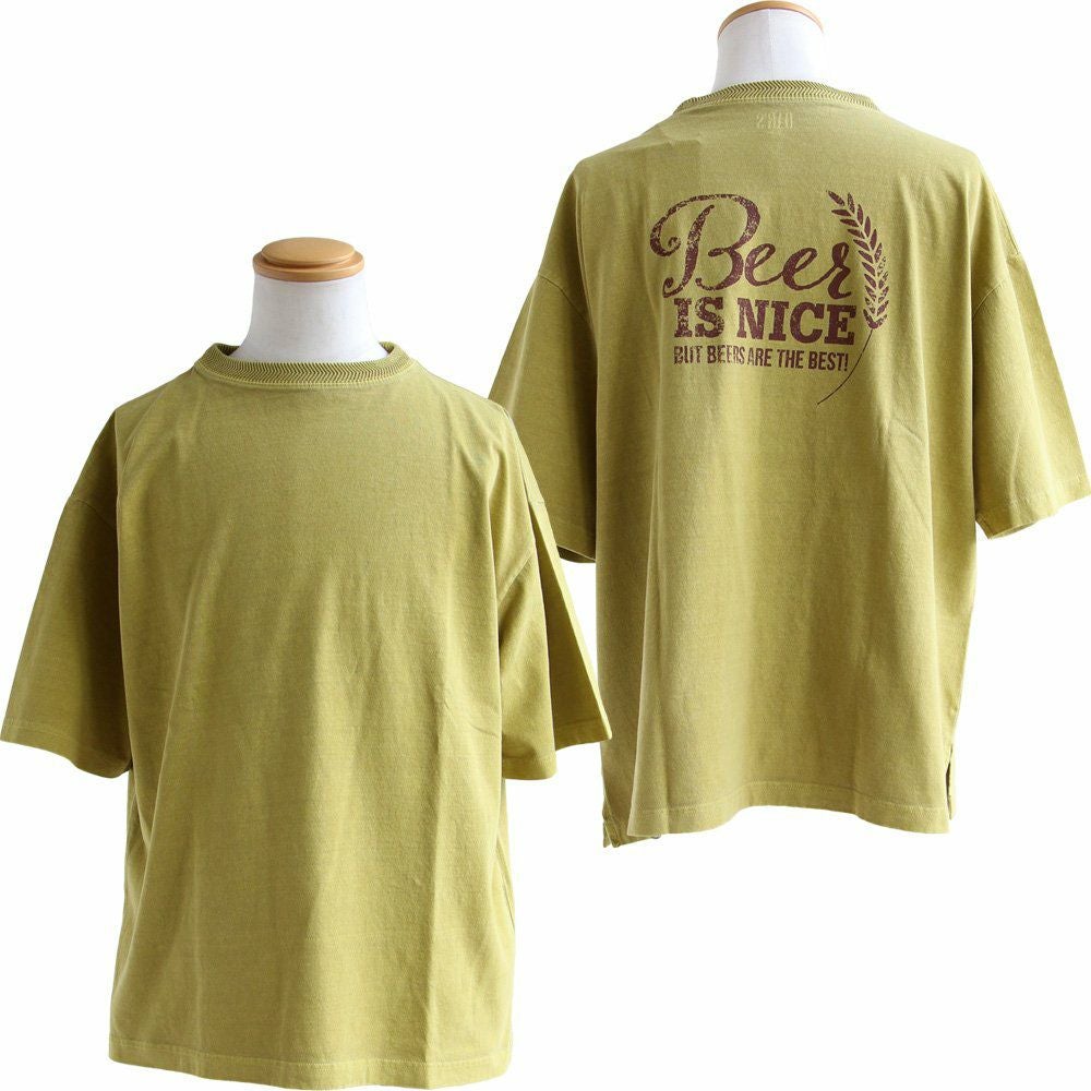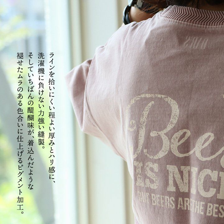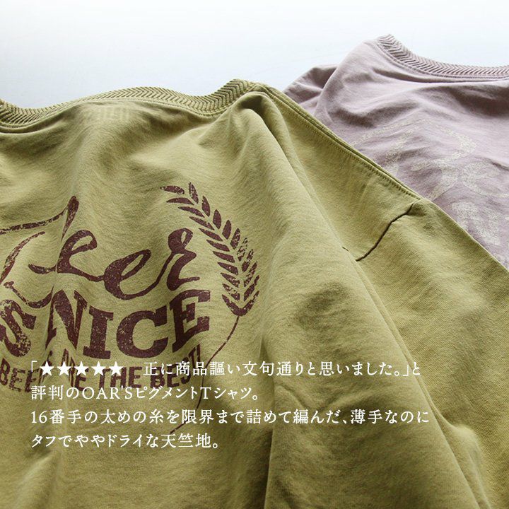ビールが好きすぎるからこそ、分かる気持ち。 ユーズド カラー tシャツ メンズ レディース 半袖 5分袖 バック プリント 大き目 ビッグシルエット ワイド 着やせ 夏 涼しい 冷感 綿100 コットン しっかり 丈夫 洗濯 強い リブ 重ね着 アメカジ カジュアル パティ OAR’S オールズ