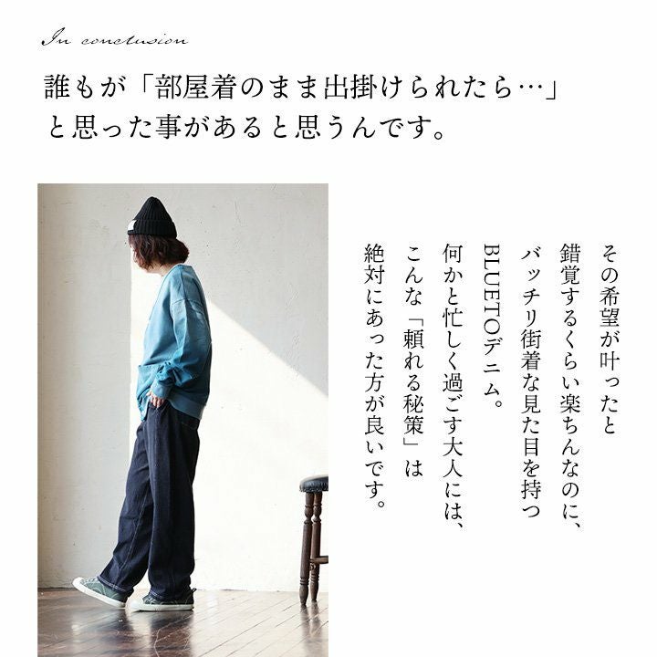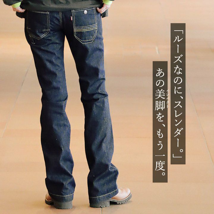 「ルーズなのに、スレンダー。」あの美脚を、もう一度。 レディース ジーンズ ストレート デニム パンツ 日本製 ワンウォッシュ フレア ブーツカット デニムパンツ ストレートパンツ ジーパン 岡山 児島 アメカジ バイク 脚長 スリム ルーズ スレンダーシルエット フレアパンツ ストレートパンツ PATY パティ BLUETO ブルート