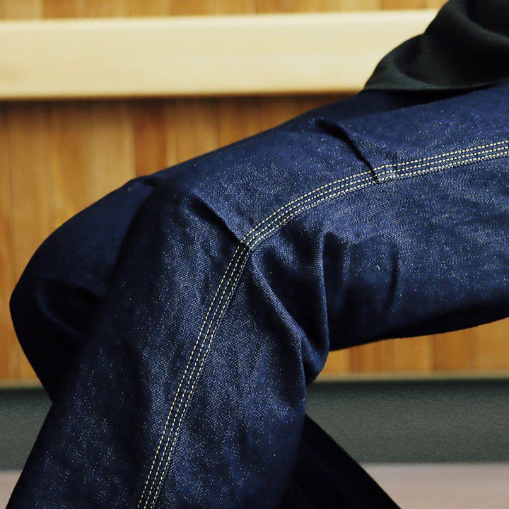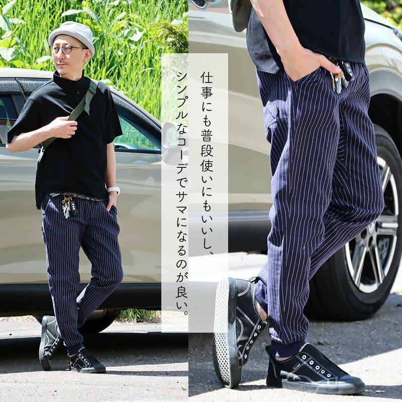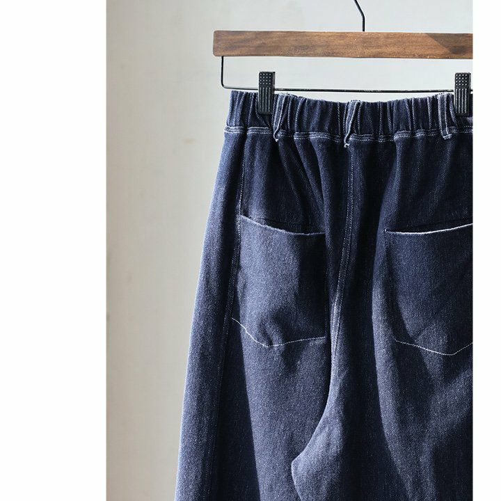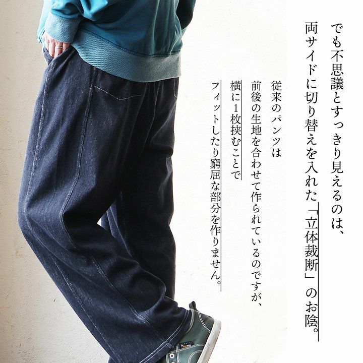 気温が高くても、デニムを穿くなら。 gym master ジムマスター デニム パンツ テーパード メンズ レディース 綿100% 薄手 通気性 配色切り替え ワンウォッシュ ブルー ウエストゴム ゆったり 体型カバー 着痩せ 夏 涼しい アウトドア カジュアル パティ コラボ