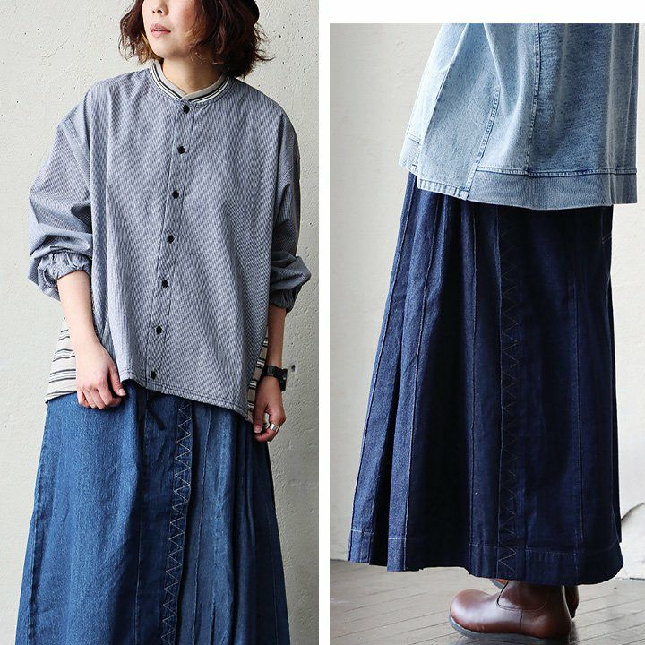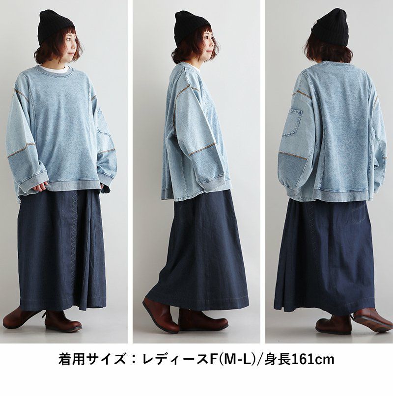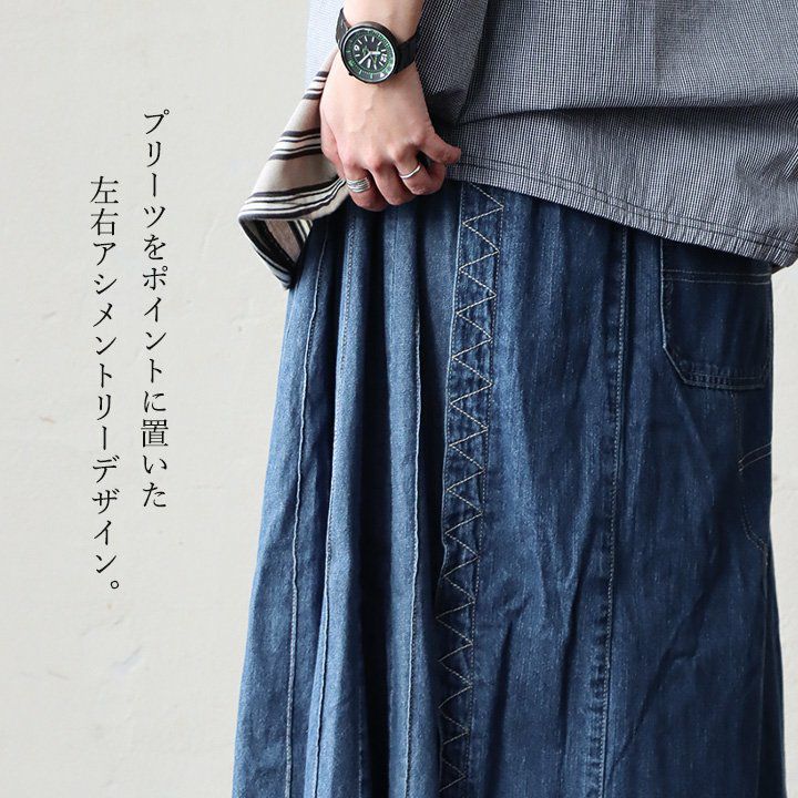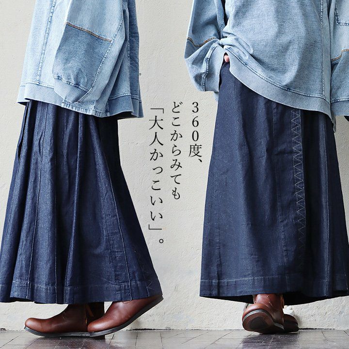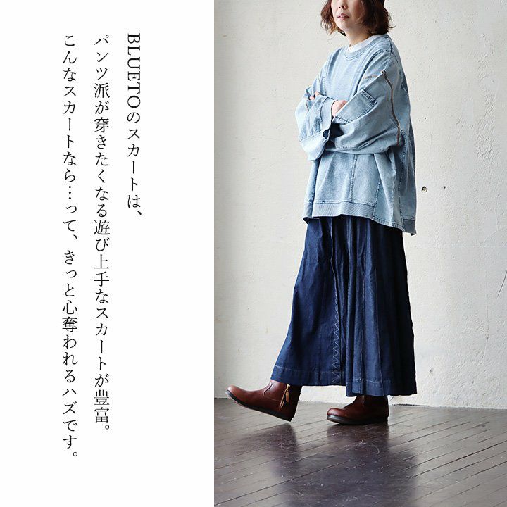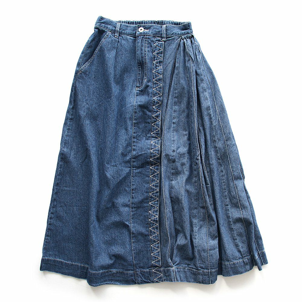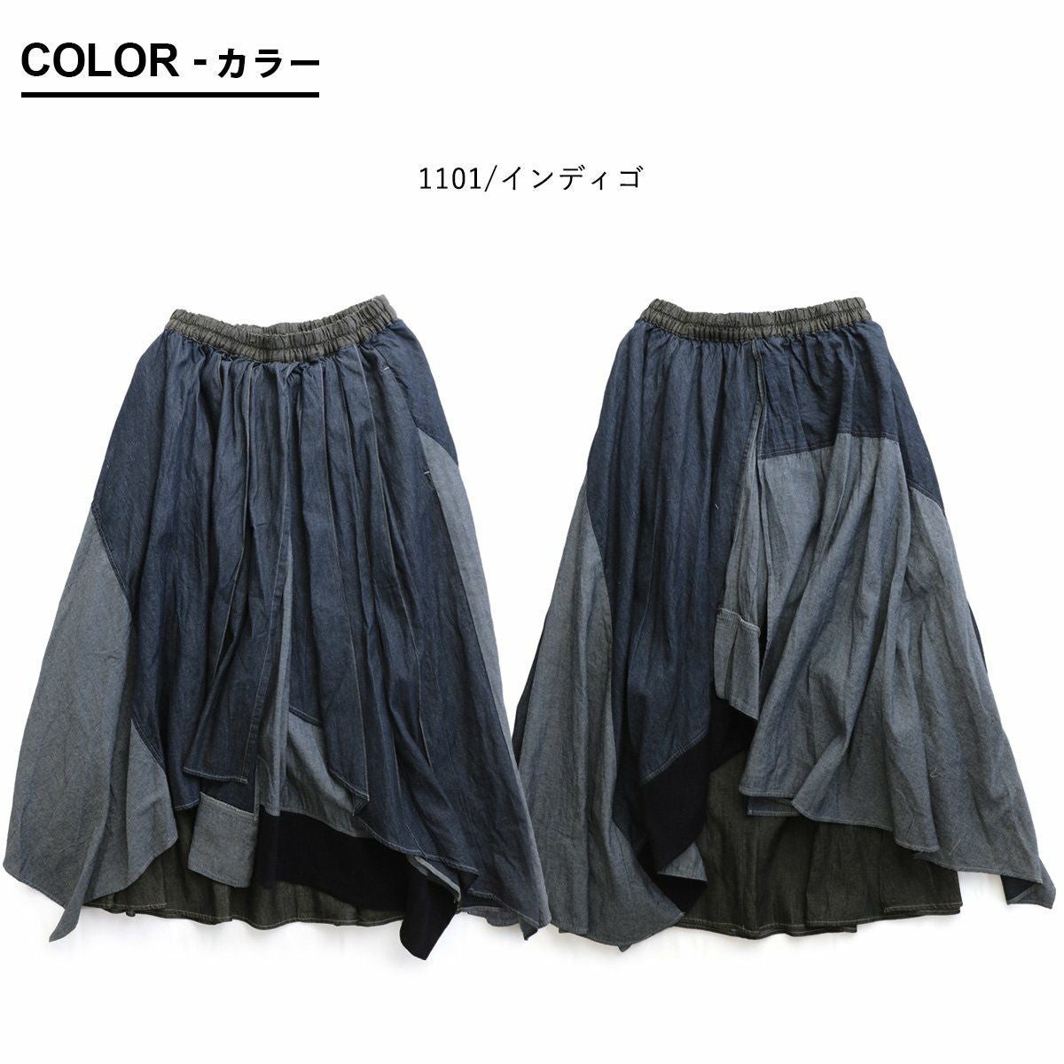 360度、どこからみてもかっこいい「メーニーパーツ」なスカート。 スカート マキシ丈スカート デニムマキシ リメイク パッチワーク 着痩せ 脚長 ロングスカート マキシスカート レディース ゆったり かっこいい フレアスカート 大きいサイズ 大人 カジュアル アメカジ パティ BLUETO ブルート