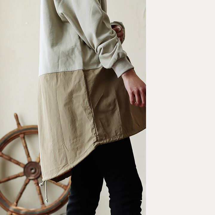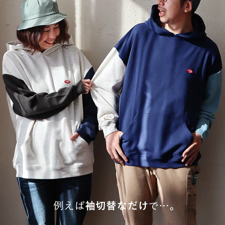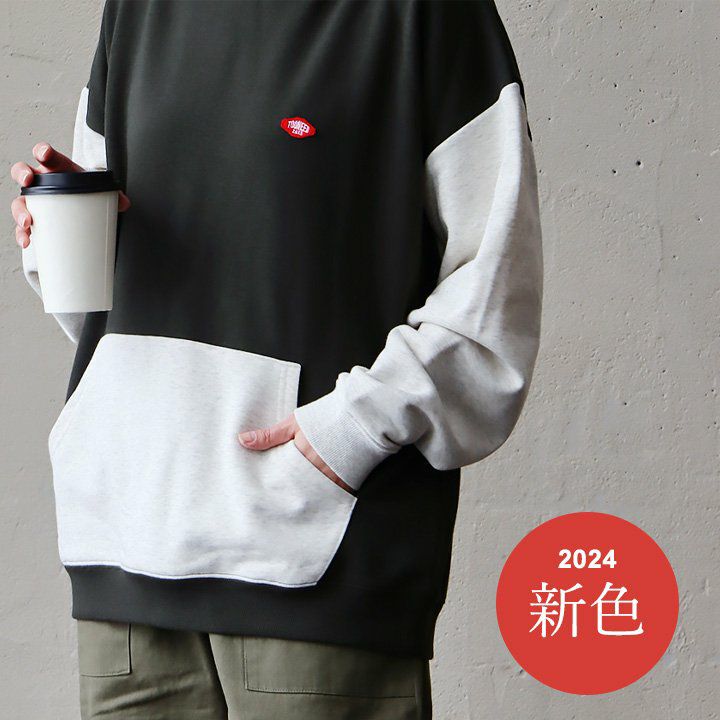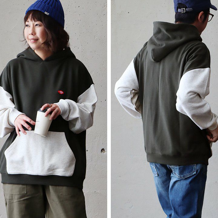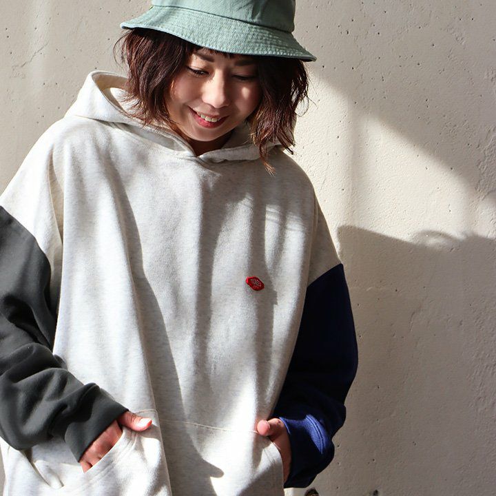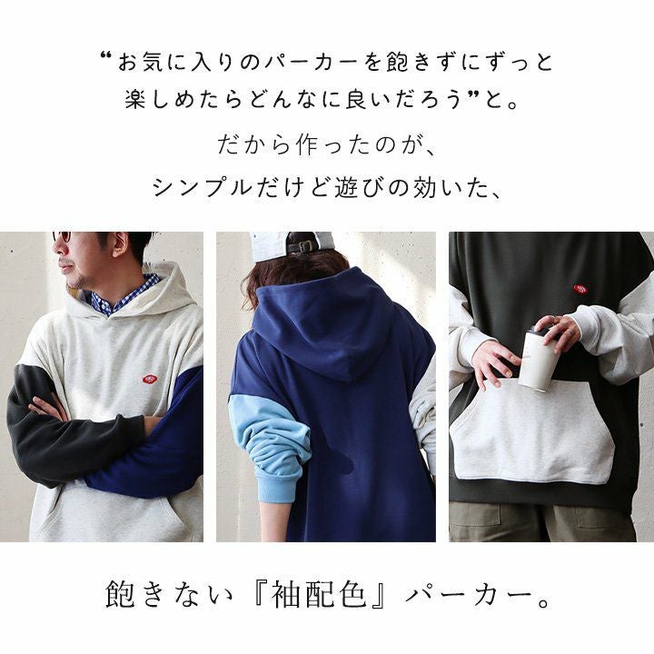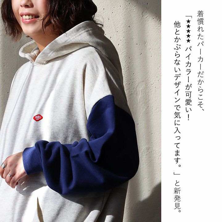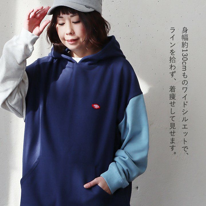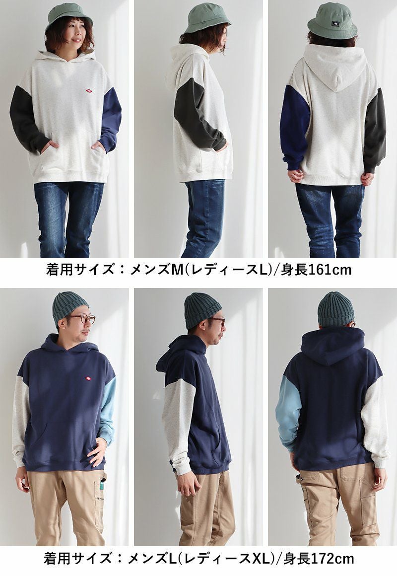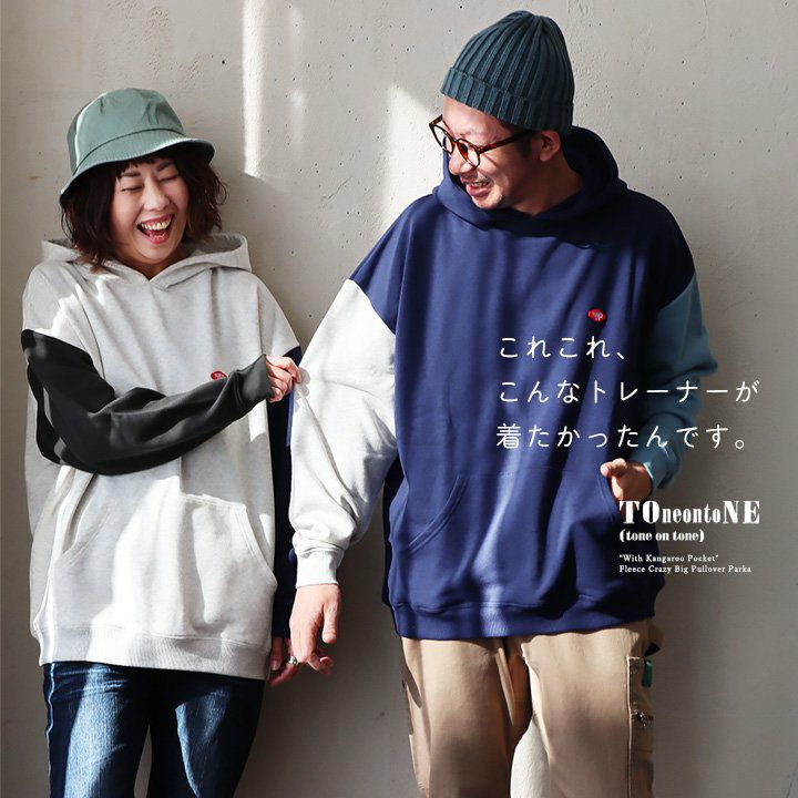 例えば袖切替なだけで…。 パーカー 裏毛 春 スウェット ワイド すっきり 着痩せ ビッグシルエット 体系 お尻 隠れ カバー メンズ レディース 長袖 ポケット 柔らか 薄手 軽い リブ 袖切替 クレイジー スエット パティ TOneontoNE トーン
