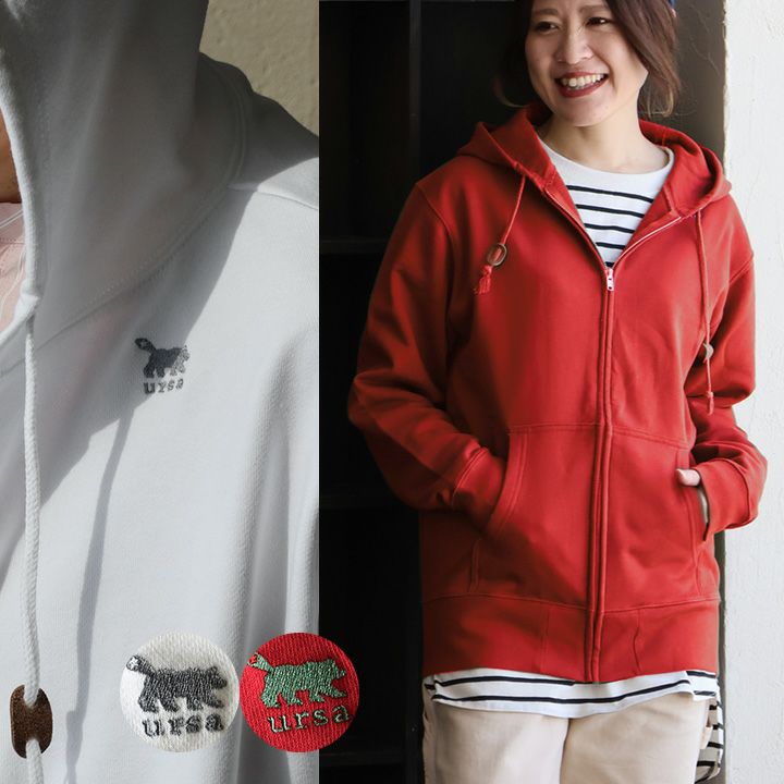 1色買うと他も欲しくなる、この「沼感」のある心地良さっ! ジップアップパーカー レディース メンズ スウェット 長袖 綿100% ジップパーカー スウェットパーカー くま 刺繍 春 春服 しっかり 丈夫 柔らか 裏パイル ゆったり レザー 赤 黒 大人 カジュアル スエット パティ SAIL セイル