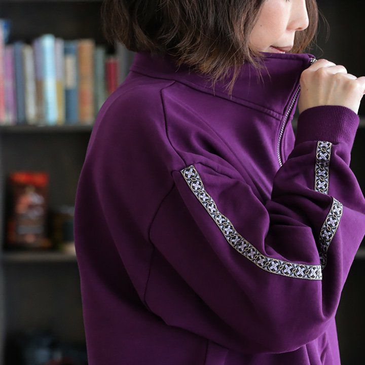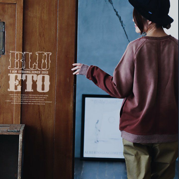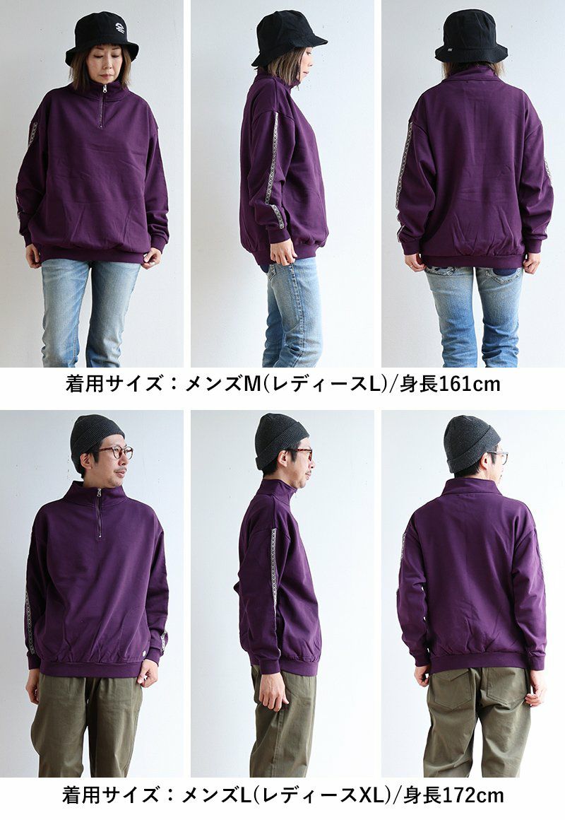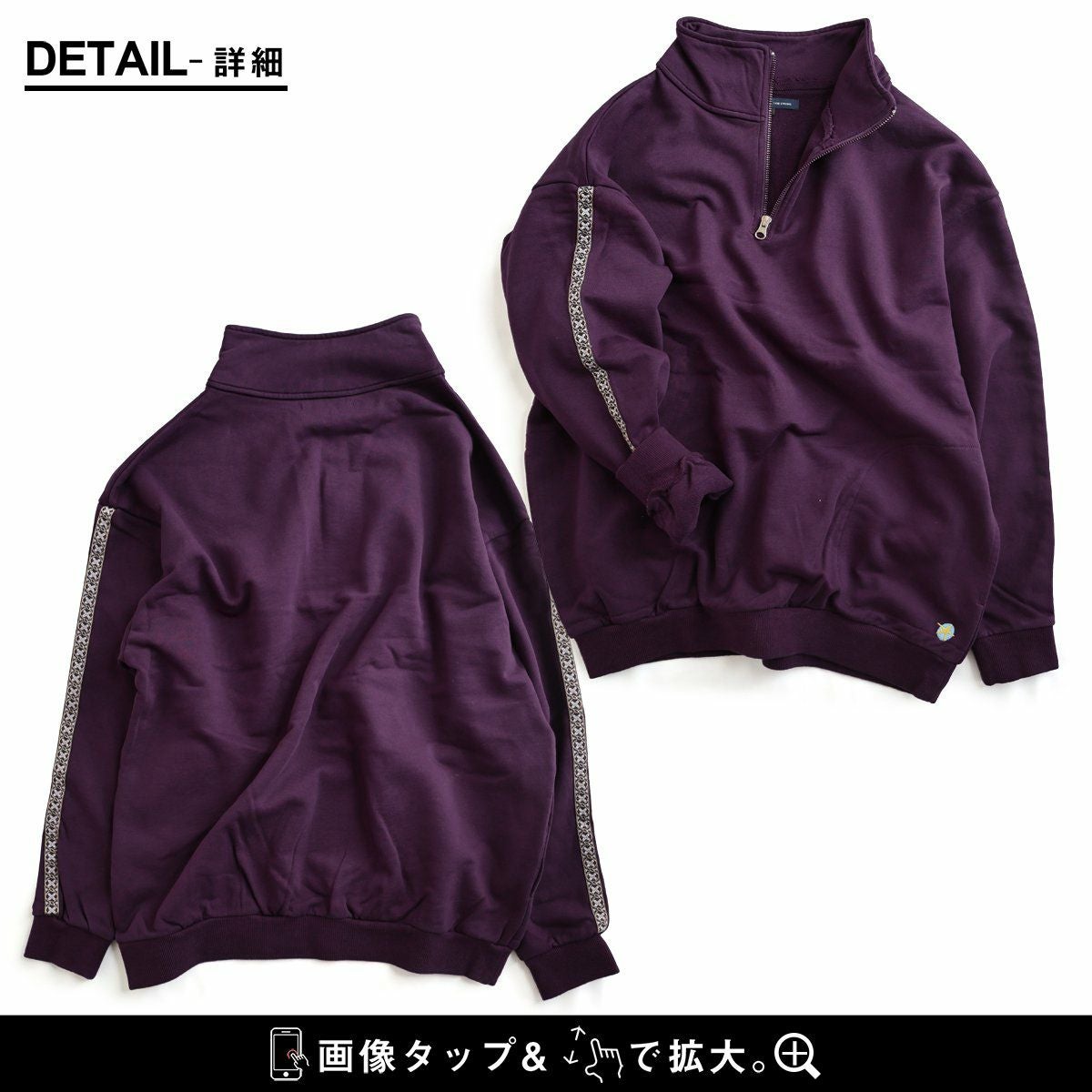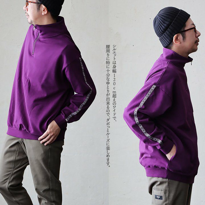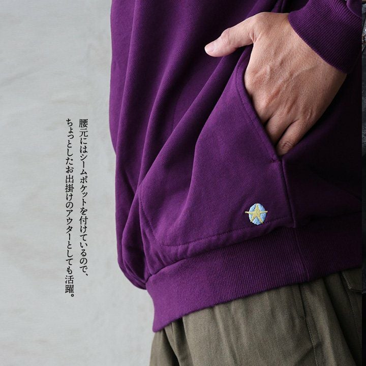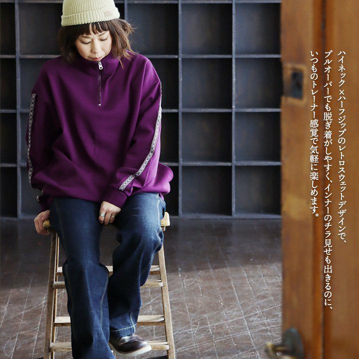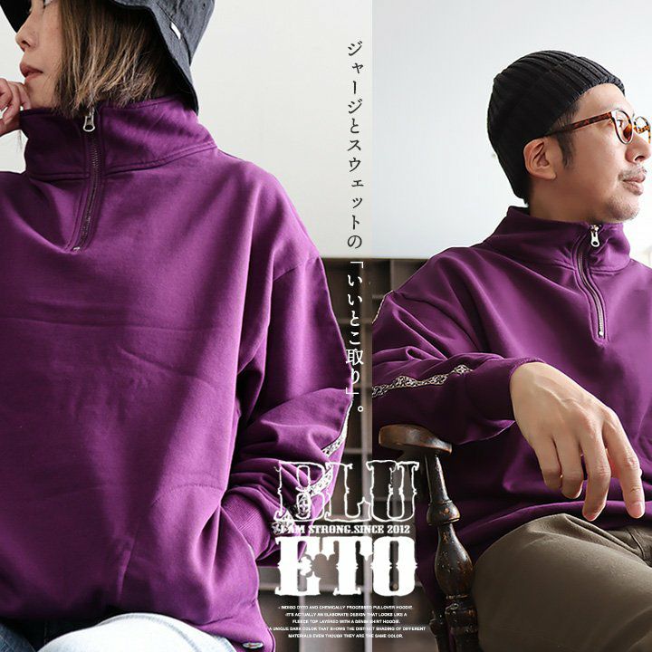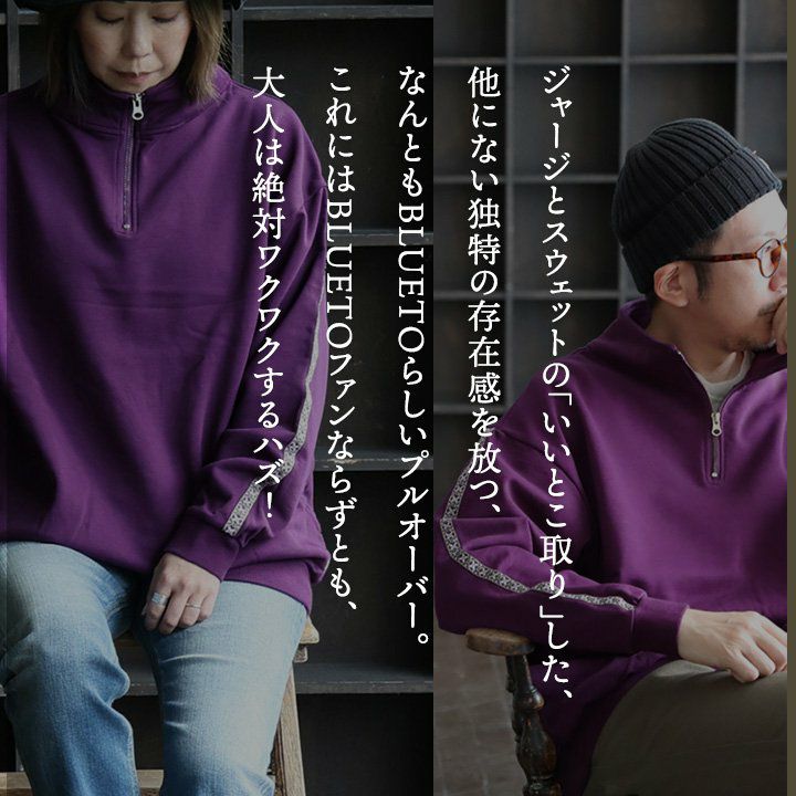 ジャージとスウェットの「いいとこ取り」。 スウェット トレーナー 長袖 ハーフジップ メンズ レディース しっかり 丈夫 綿100% 裏毛 活性染め ワイド ビッグシルエット お尻 隠れ カバー ドロップショルダー ポケット ロゴ 刺繍 スエット レトロ ジャージ風 大人 カジュアル パティ BLUETO ブルート