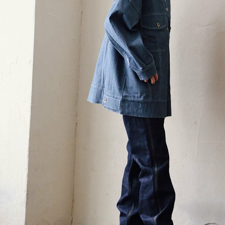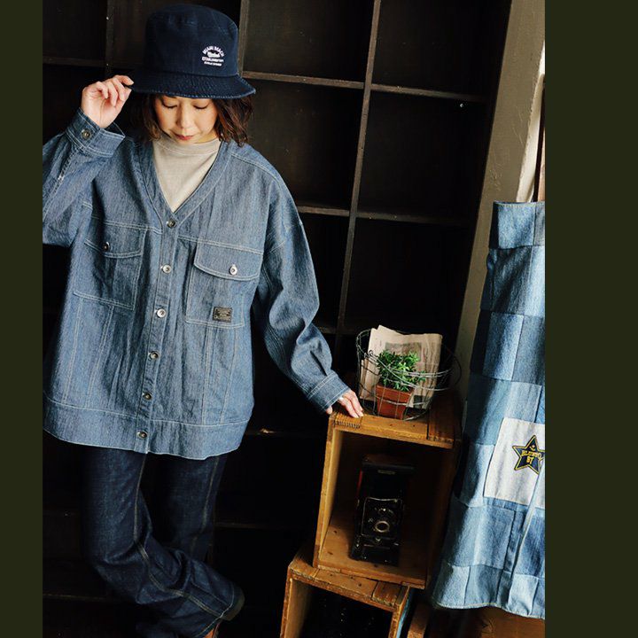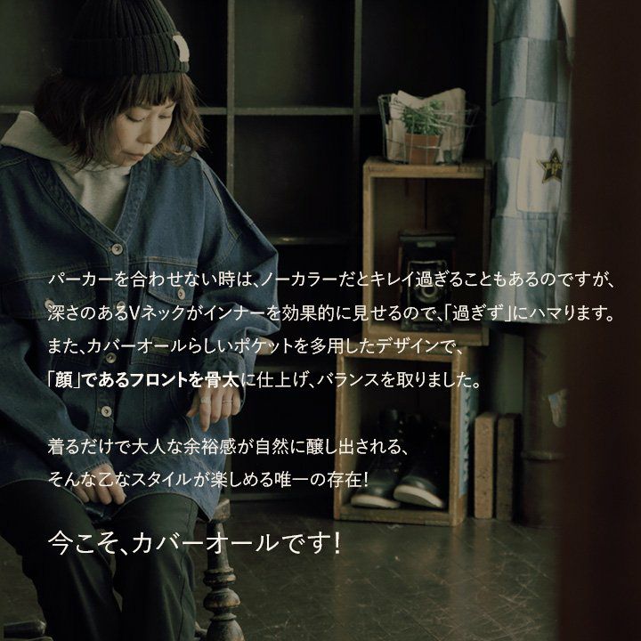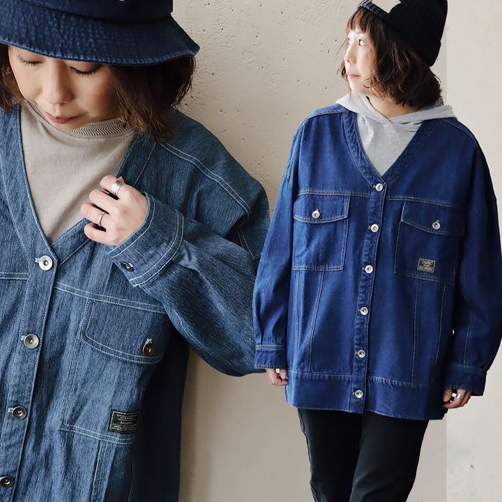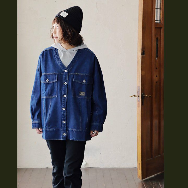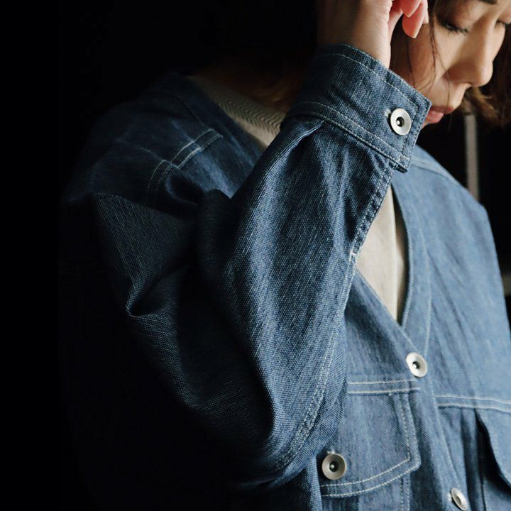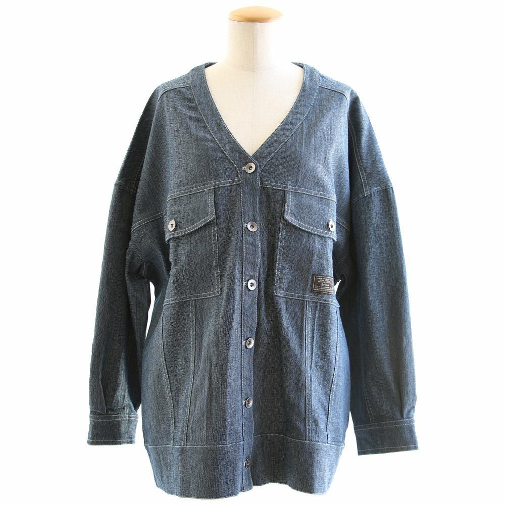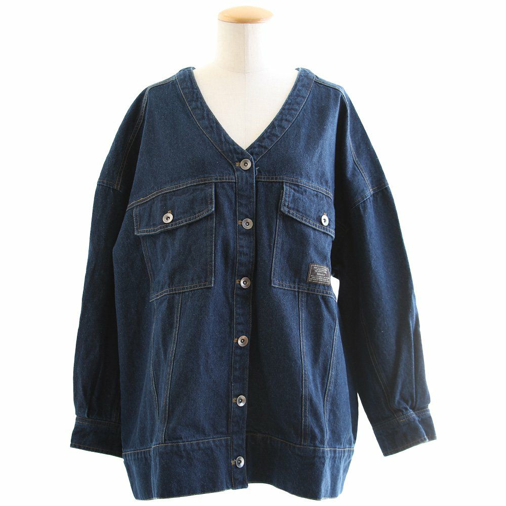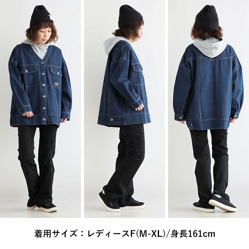 デニムなのにゆったりしていて動き易くて、軽やか。 デニムジャケット レディース 大きめ Gジャン レディース 大きいサイズ オーバーサイズ コットン ノーカラー カバーオール 長袖 カジュアル 大人 おしゃれ シンプル 春 秋 PATY パティ BLUETO ブルート