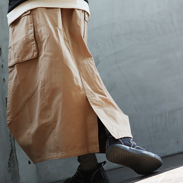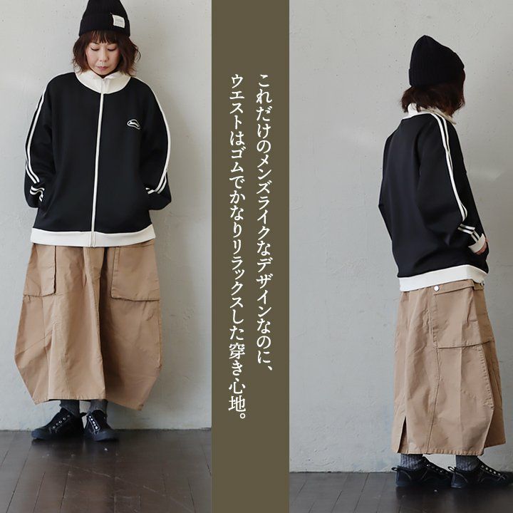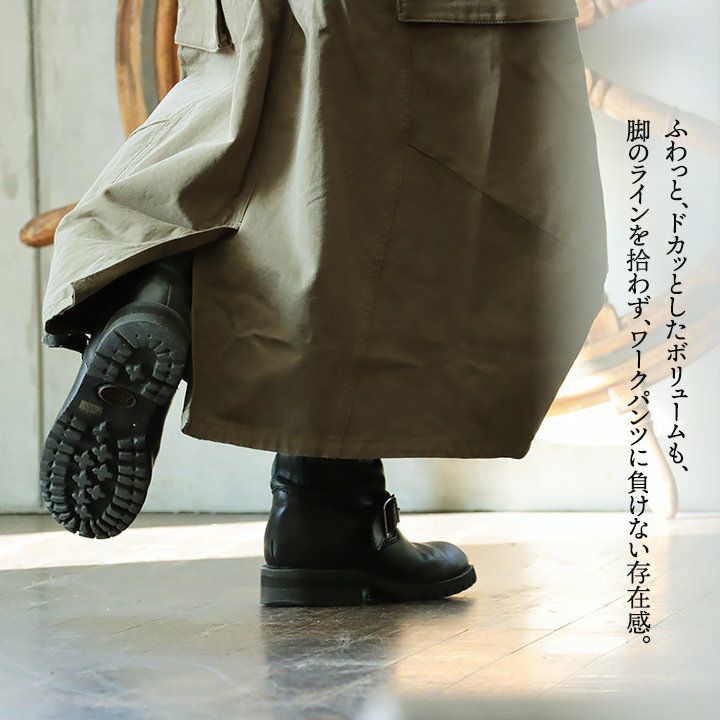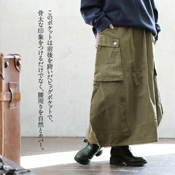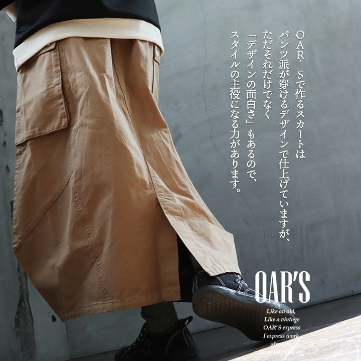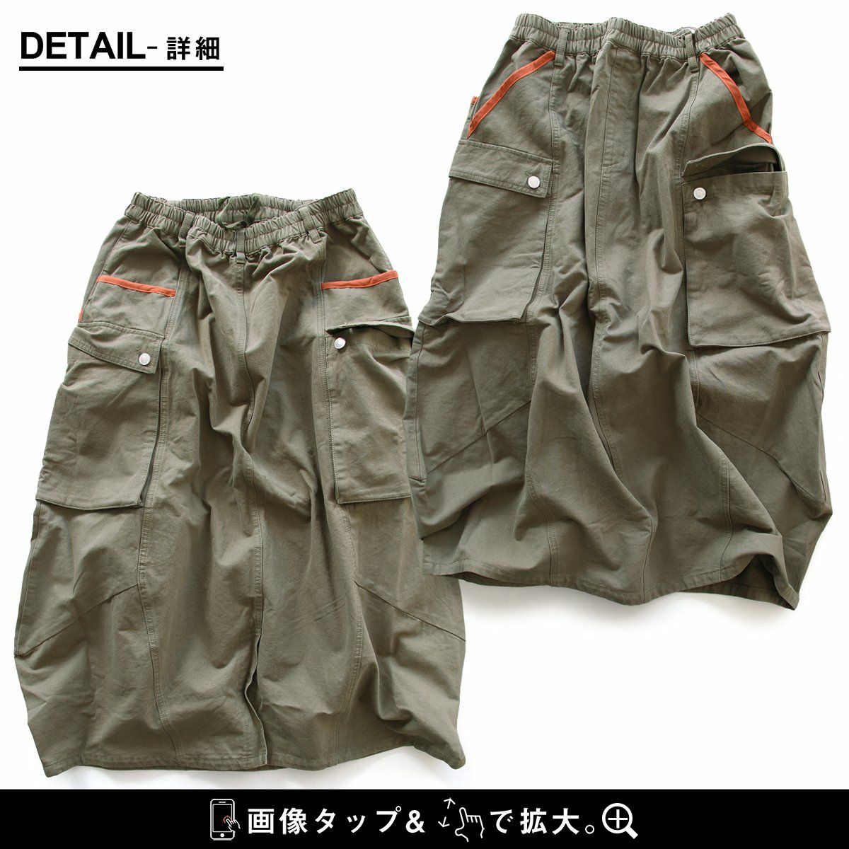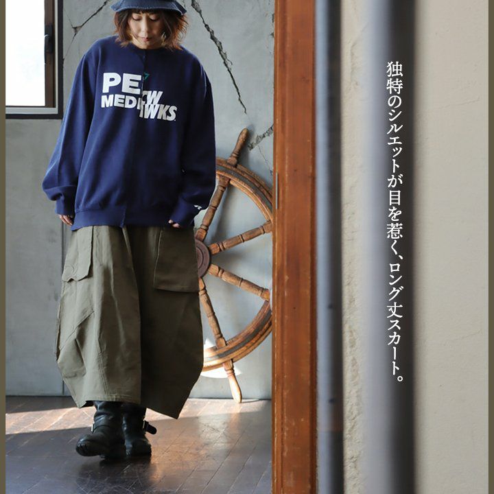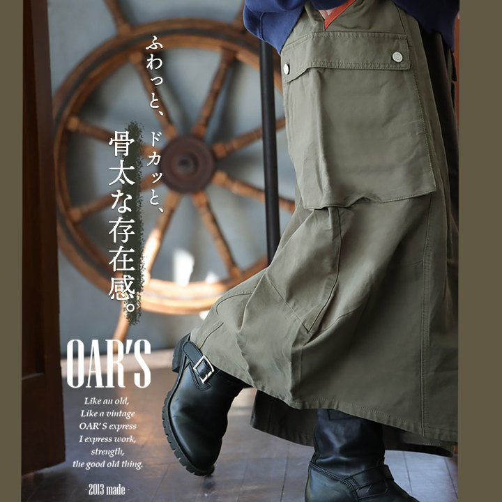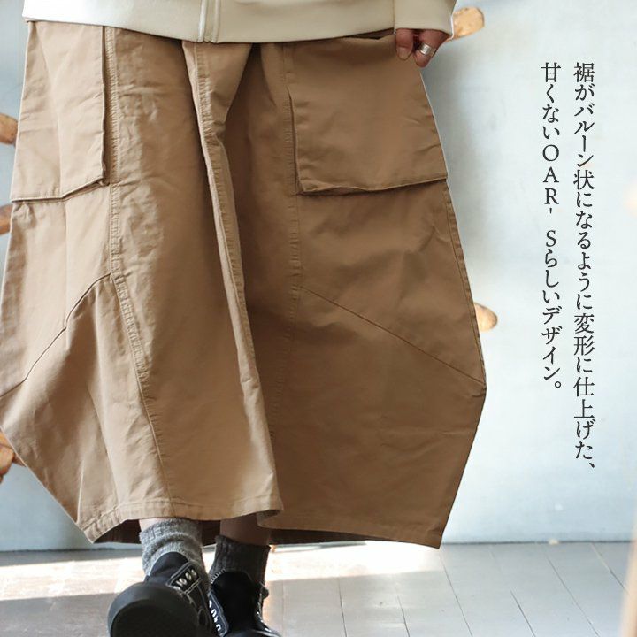 ふわっと、ドカッと、骨太な存在感。 スカート ロングスカート ロング丈 レディース 変形 アシメントリー バルーン 配色 パイピング カーゴポケット ミリタリー ゆったり 楽ちん 大きい 着痩せ 細見え 綿100% メンズライク 春 カジュアル パティ OAR’S オールズ