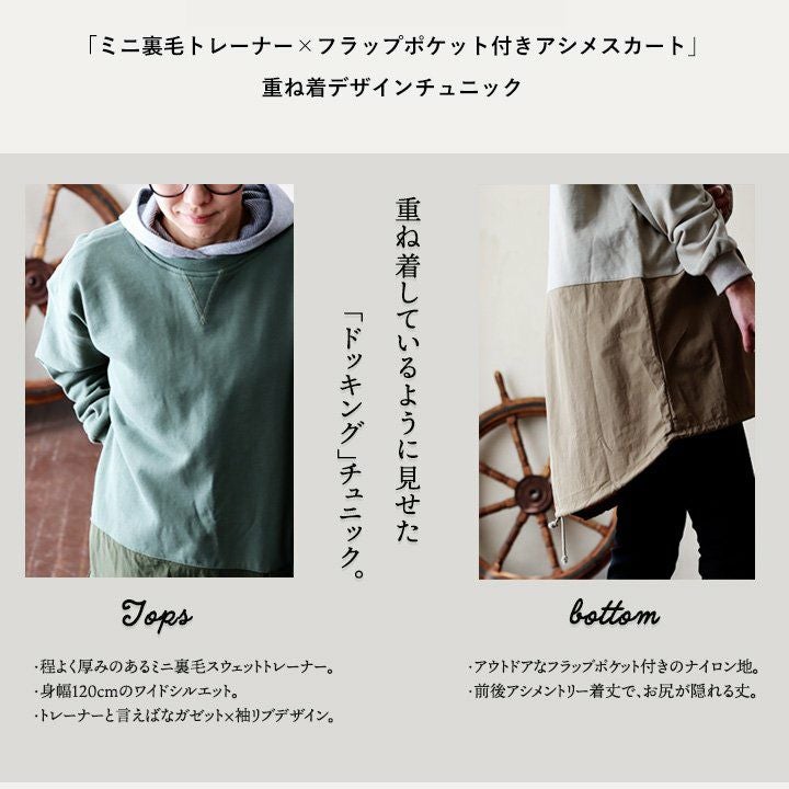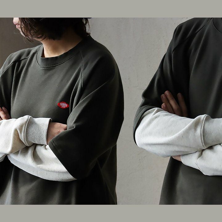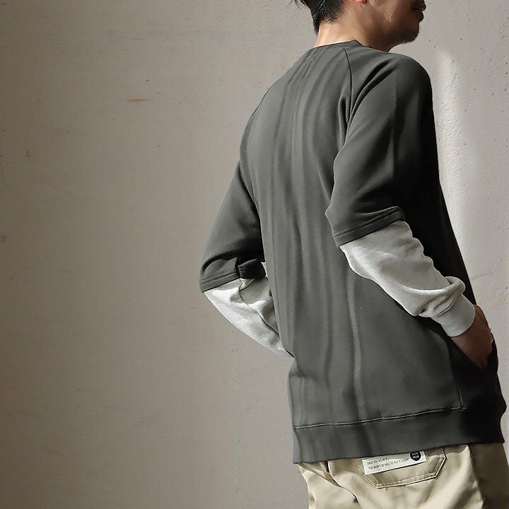 シンプルでも「裏腹」でオモシロイから、一枚でキマル! 重ね着 風 トレーナー 軽い 裏毛 薄手 春 オーバーサイズ ワイド すっきり 着痩せ 長袖 スウェット お尻 隠れ カバー メンズ レディース ポケット フェイクレイヤード 袖リブ ラグラン スエット カジュアル パティ TOneontoNE トーン