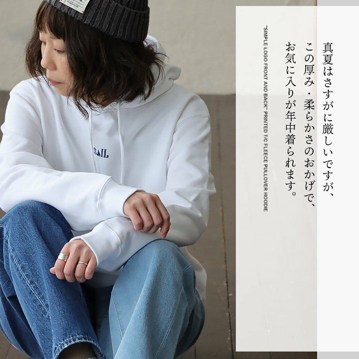 「過ぎない」くらいがちょうどいい。 パーカー 裏毛 春 スウェット かっこいい おしゃれ デザイン プリント ワイド すっきり 着痩せ ビッグシルエット 体系 お尻 隠れ カバー メンズ レディース 長袖 ポケット 柔らか 薄手 軽い リブ スエット パティ SAIL セイル
