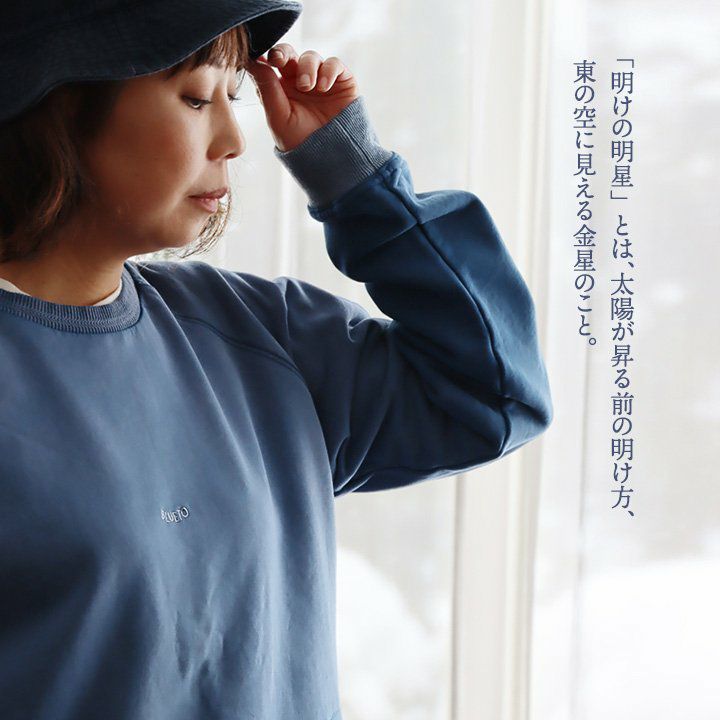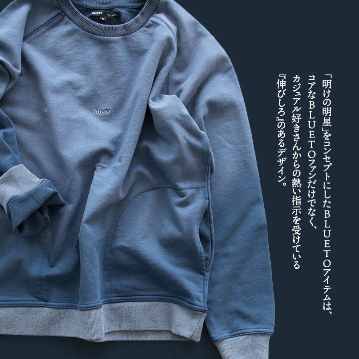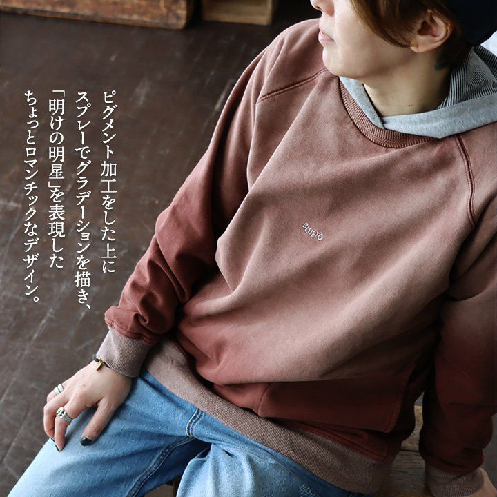 明けの明星。 トレーナー スウェット 長袖 メンズ レディース しっかり 丈夫 コットン 綿100% 月星 プリント 活性染め グラデーション加工 ラグラン ポケット ロゴ 刺繍 スエット アメカジ 大きいサイズ 大人 カジュアル パティ BLUETO ブルート
