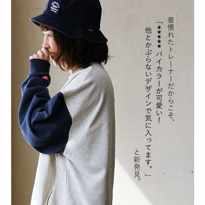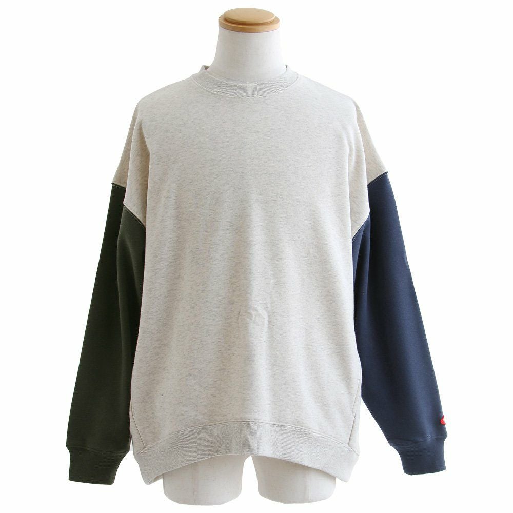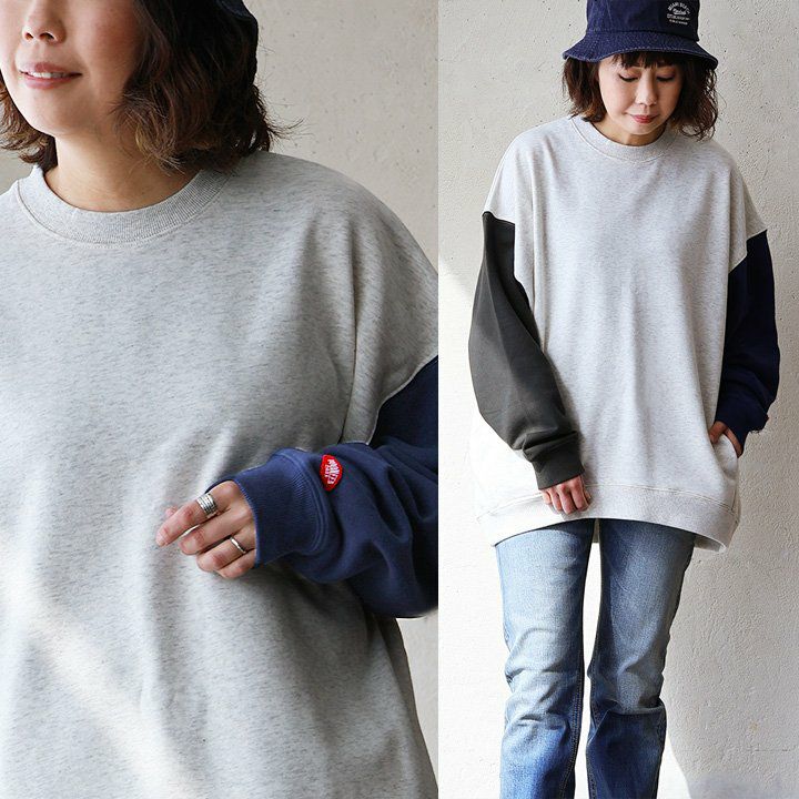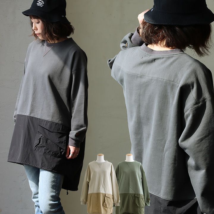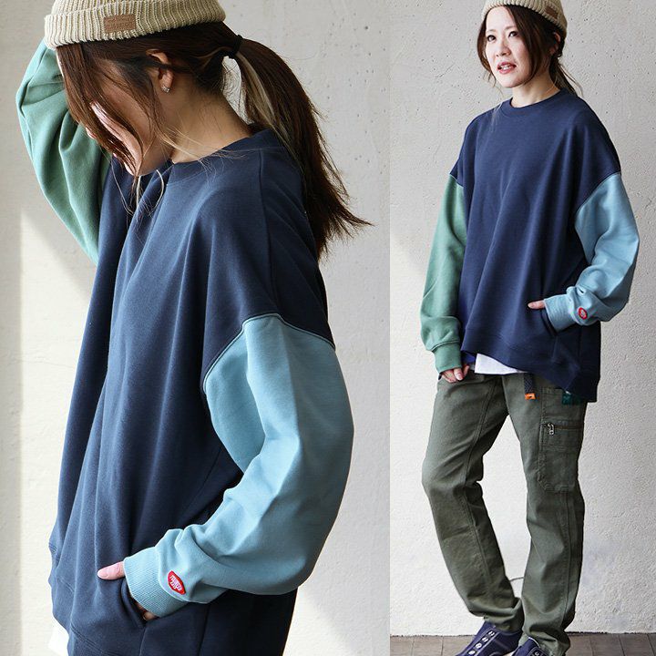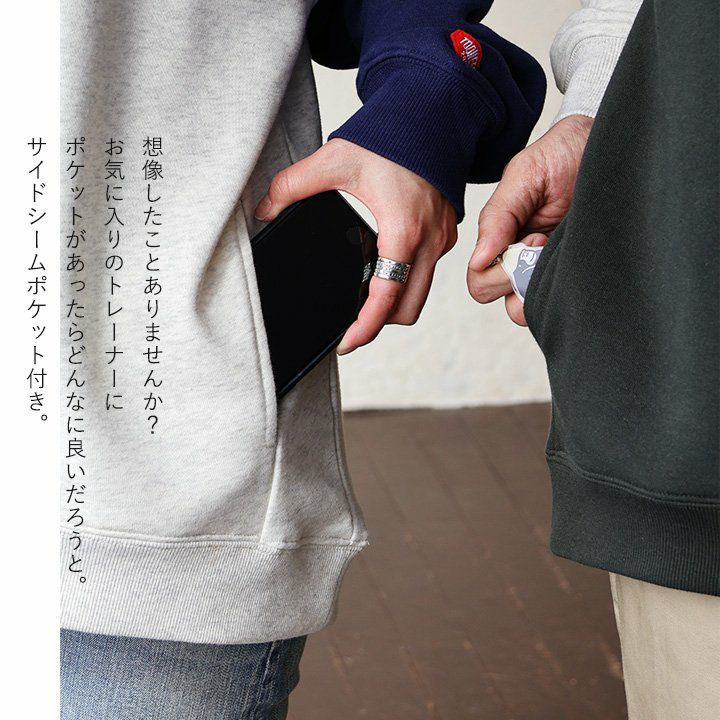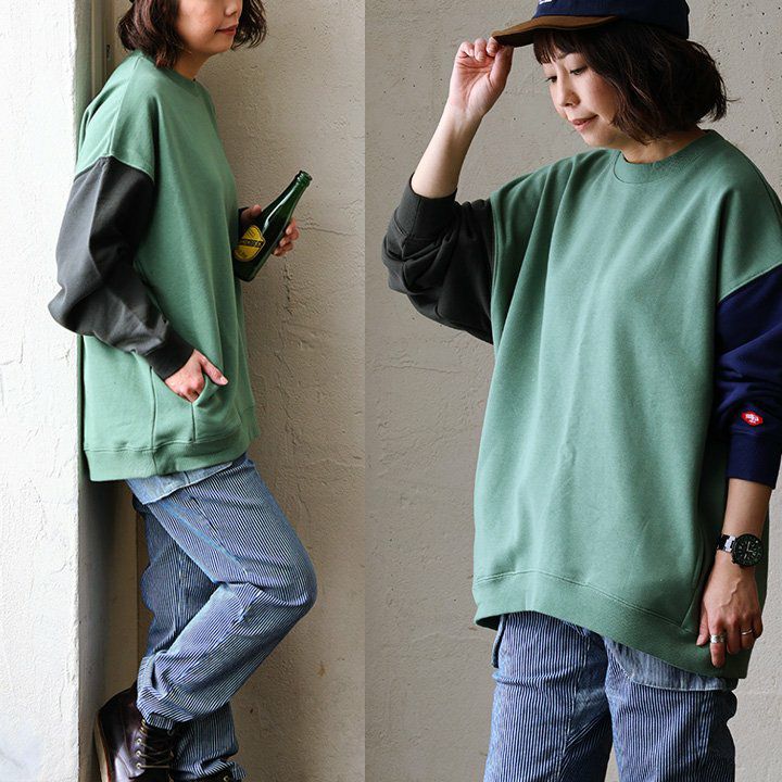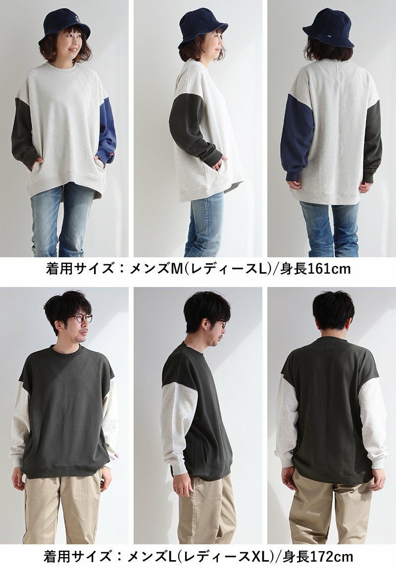 例えば袖切替なだけで…。 トレーナー 裏毛 春 スウェット ワイド すっきり 着痩せ ビッグシルエット 体系 お尻 隠れ カバー メンズ レディース 長袖 ポケット 柔らか 薄手 軽い リブ クルーネック 袖切替 クレイジー スエット パティ TOneontoNE トーン