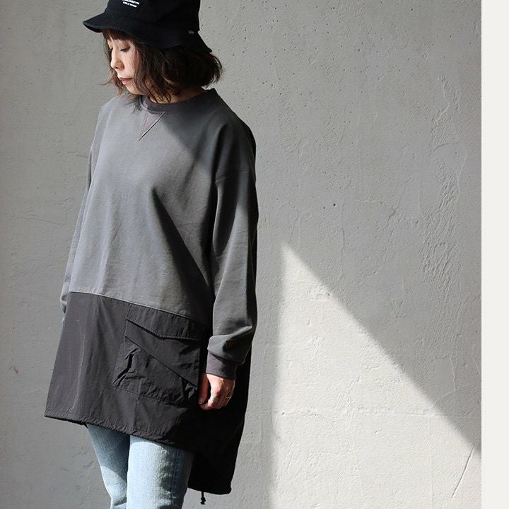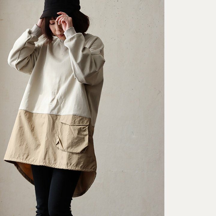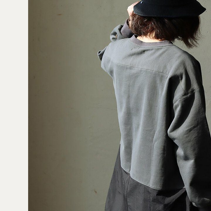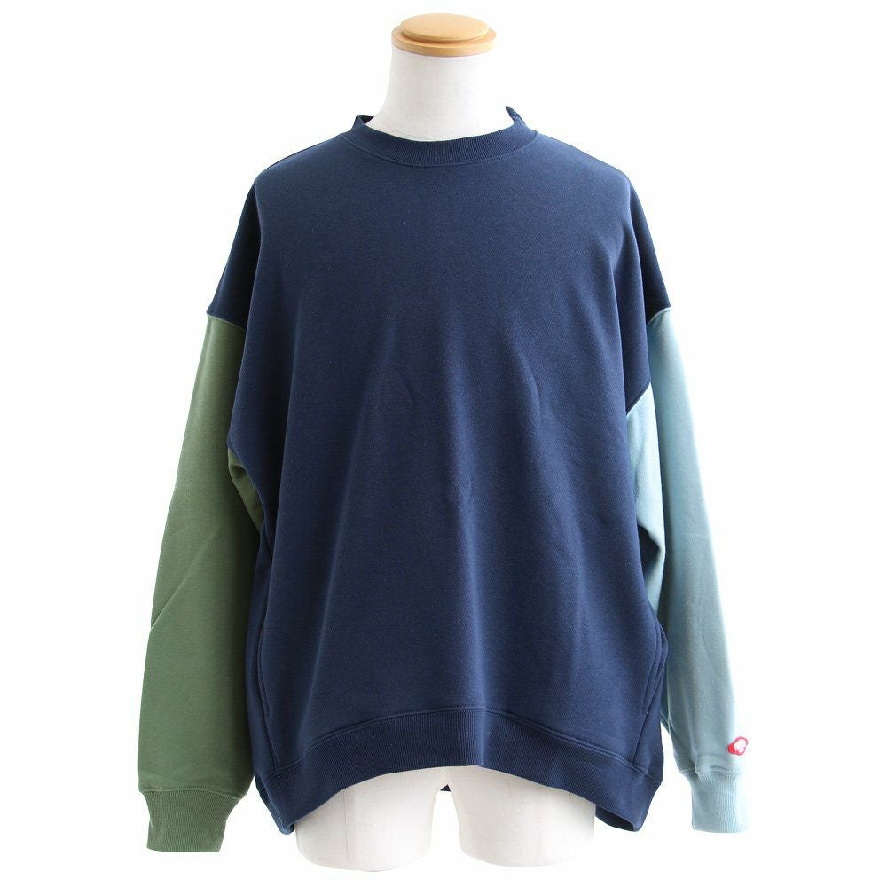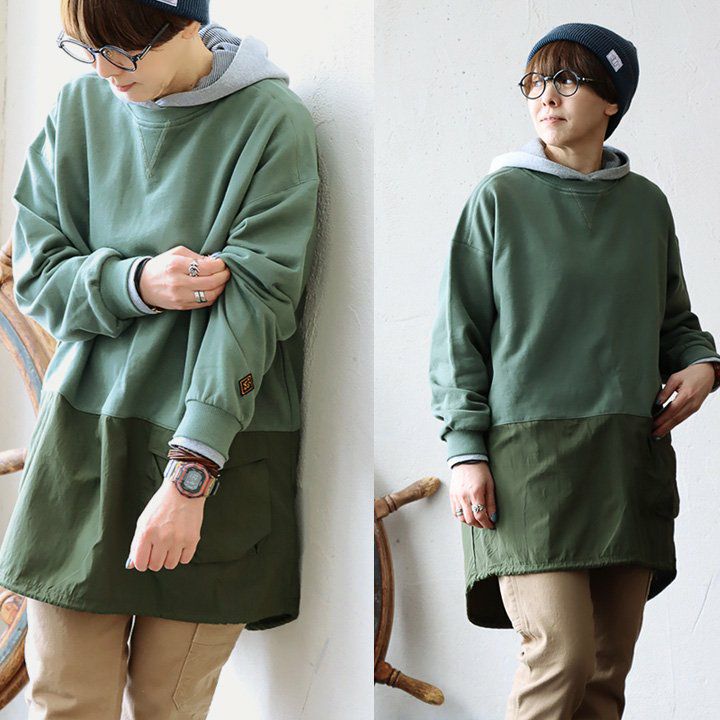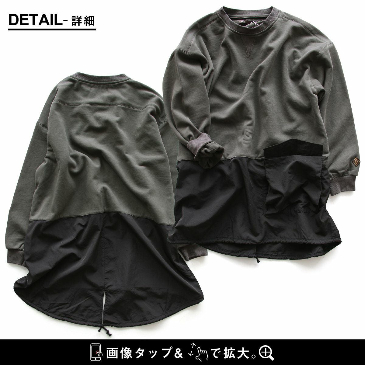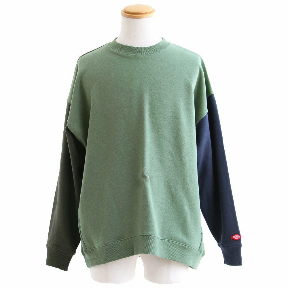 例えば袖切替なだけで…。 トレーナー 裏毛 春 スウェット ワイド すっきり 着痩せ ビッグシルエット 体系 お尻 隠れ カバー メンズ レディース 長袖 ポケット 柔らか 薄手 軽い リブ クルーネック 袖切替 クレイジー スエット パティ TOneontoNE トーン