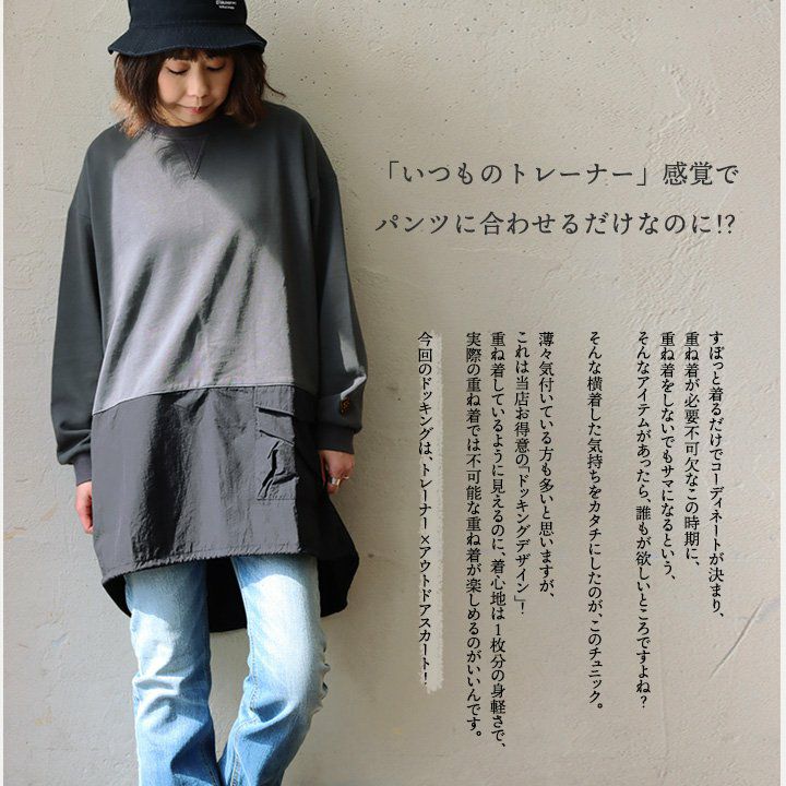 「いつものトレーナー」感覚でパンツに合わせるだけなのに!? チュニック トレーナー スウェット レディース 長袖 ハイネック 重ね着 チュニックワンピース 長袖 プルオーバー 大きいサイズ 大きい 春 ゆったり おしゃれ かっこいい 体型カバー お尻 隠れる パティ OAR’S オールズ