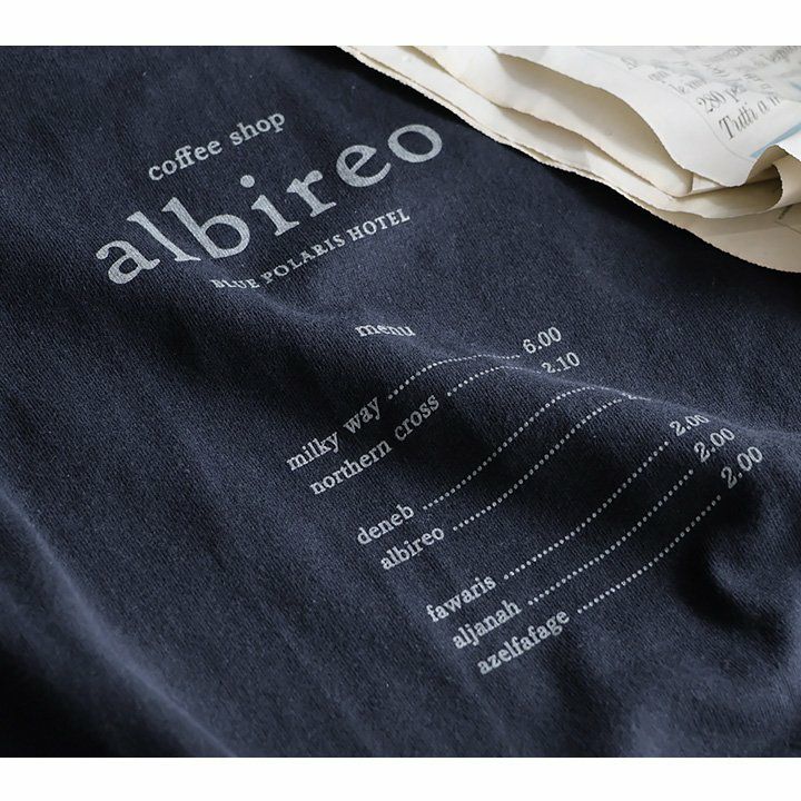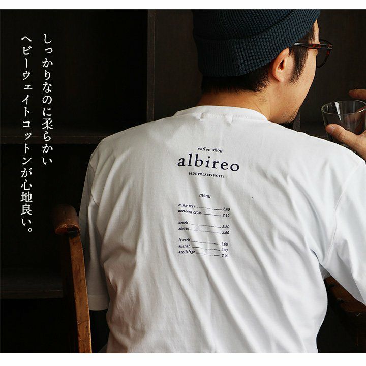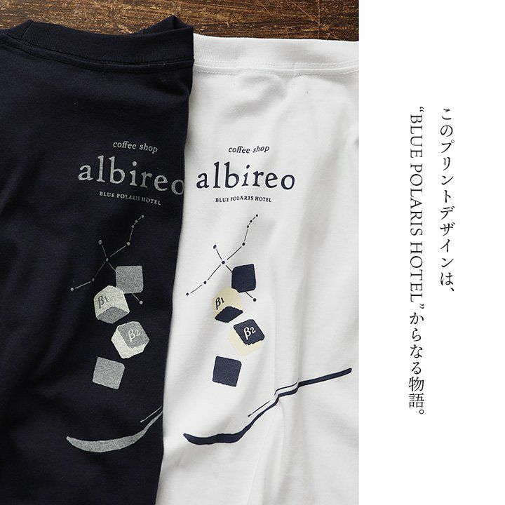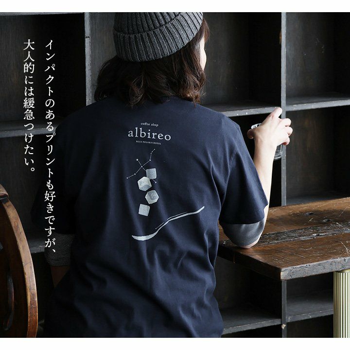 albireo sugar アルビレオ シュガー 【メール便50】 tシャツ ティーシャツ ロゴT メンズ レディース 半袖 星 星座 Albireo アルビレオ 白鳥 宇宙 ホテル ポラリス プリント コーヒー カフェ 重ね着 カジュアル しっかり 丈夫 綿100% コットン おしゃれ ボックスシルエット 春 夏 パティ SAIL セイル