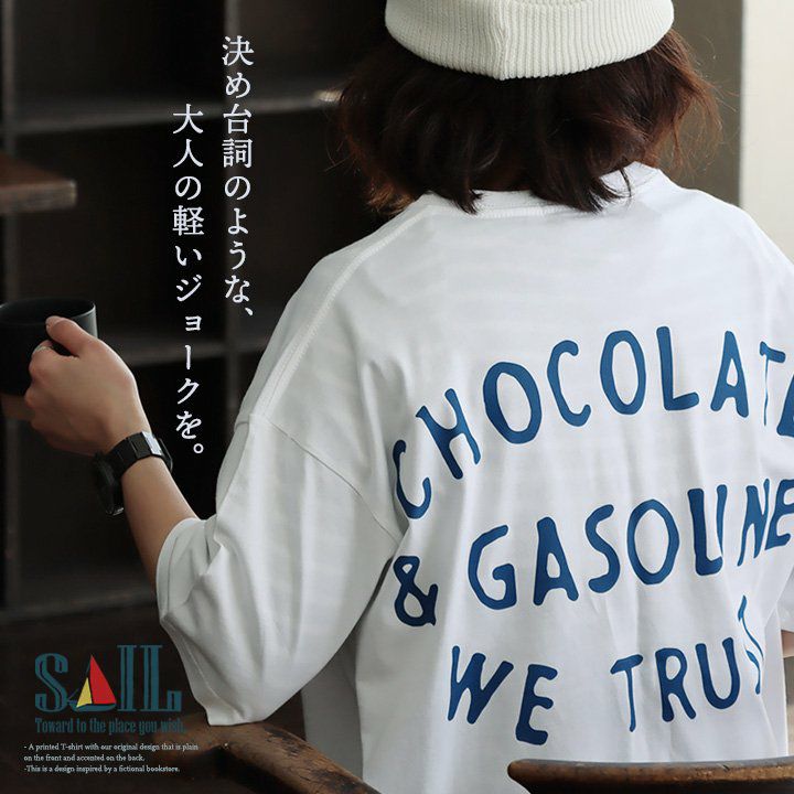 決め台詞のような、大人の軽いジョークを。 【メール便50】 tシャツ 半袖 ユニセックス ティーシャツ プリントT カジュアル バック プリント 丈夫 春 夏 シンプル メンズ レディース パティ SAIL セイル