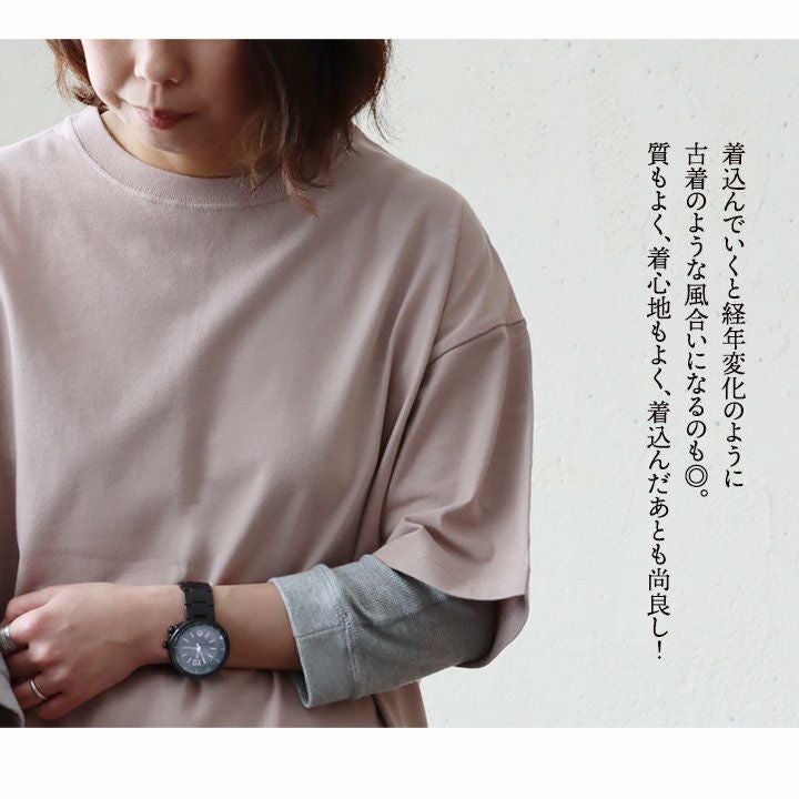 シンプルなのに、指を通すだけで理想の「重ね着上級者」に。 重ね着 ロングtシャツ レディース しっかり 丈夫 綿100% コットン アシメントリー 指穴 プリント 胸元見えない クルーネック インナー 大人 カジュアル パティ Souple スプル