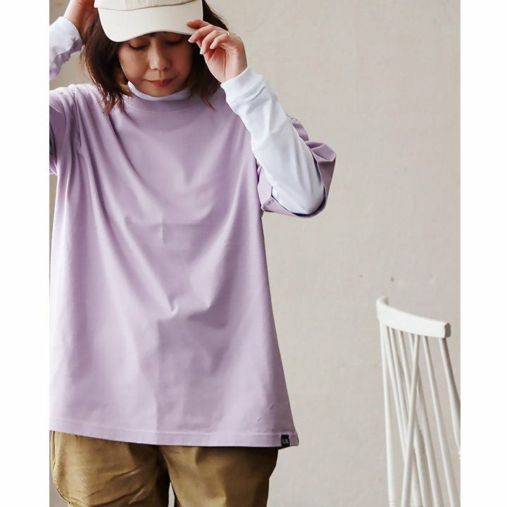 家事も仕事も1枚でも重ね着でも、すっきり楽々! カットソー 長袖 9分袖 ハイネック ロングtシャツ 重ね着 すっきり フィット 着痩せ しっかり 丈夫 ストレッチ 柔らかい レディース メンズ 綿100% コットン ロンT インナー トップス tシャツ ロング丈 クレイジー 配色 リブ パティ PATY パティ