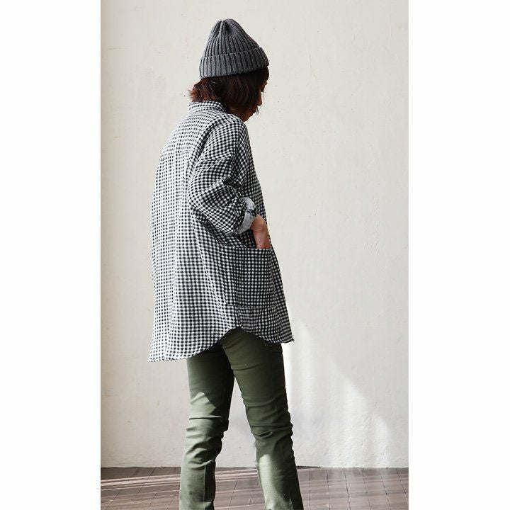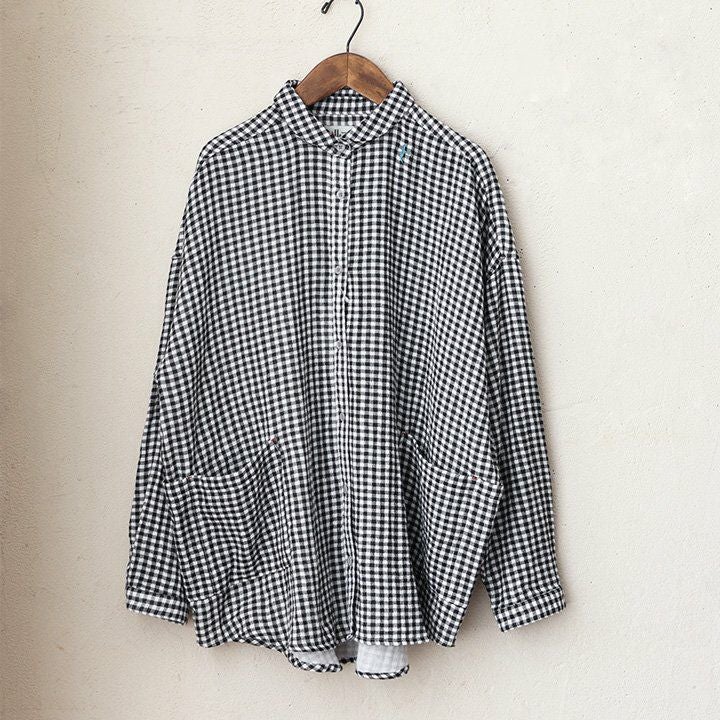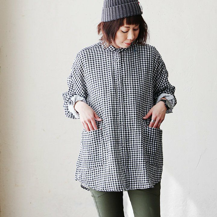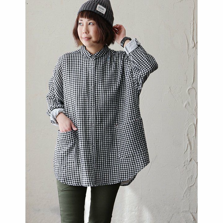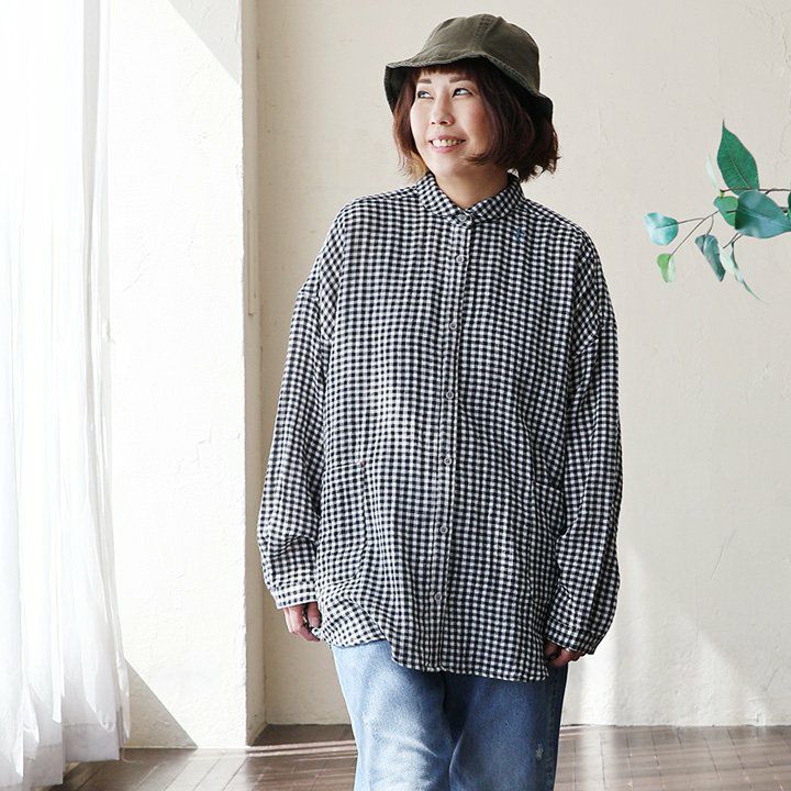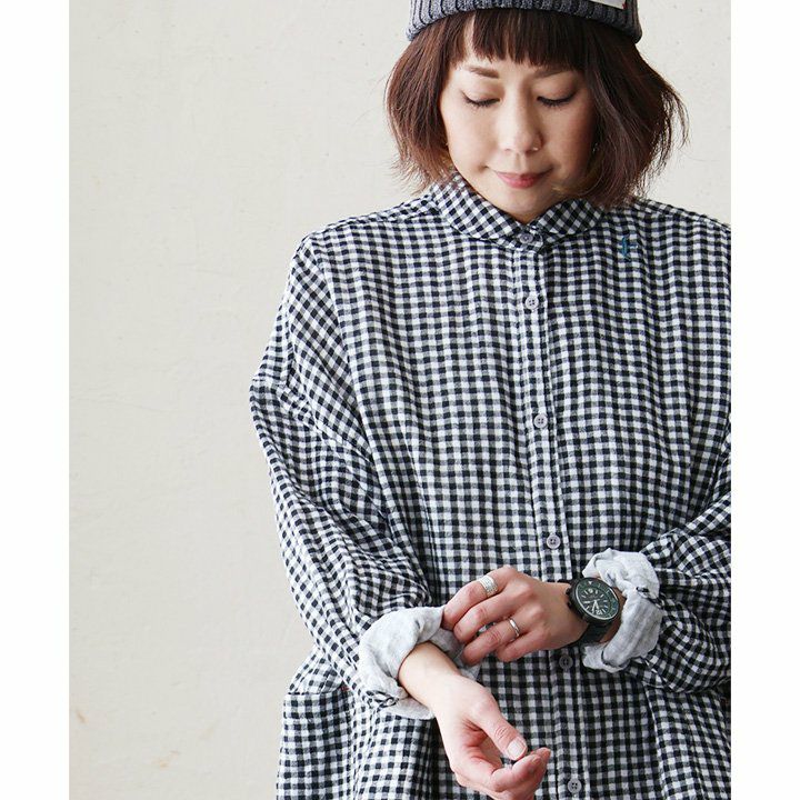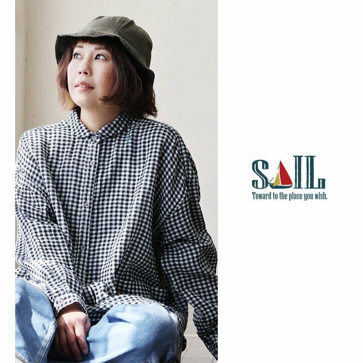 「ガーゼ」でしか得られない心地良さがある。 シャツ レディース 長袖 長袖シャツ カーゼ ダブルガーゼ 綿 コットン 春 夏 秋 冬 チェック ギンガム ポケット トップス ゆったり ノーアイロン 丸襟 襟付き つばめ 刺繍 着痩せ おしゃれ チェックシャツ カジュアル パティ SAIL セイル SAIL セイル