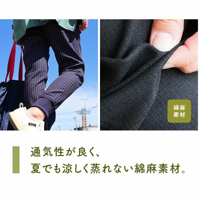 「家族にも穿かせてあげたい。」伸びて張り付かない涼感パンツ。 麻 パンツ レディース メンズ 涼しい 綿麻 夏 ストレッチ リブ テーパード スリム 細見え ウエストゴム ジョガーパンツ イージーパンツ ストレッチパンツ リネン 大きいサイズ ブラック カーキ グリーン ベージュ 洗える 軽い カジュアル PATY パティ Spants スパンツ