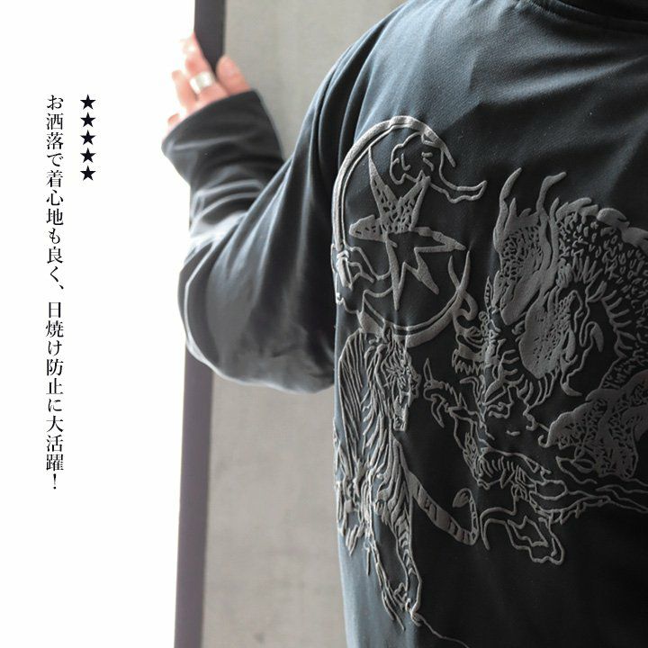 「着る、日焼け止め」。しかも、「涼しく、ドライ」。 ジャージ ラッシュガード 長袖 メンズ レディース uvカット タイガー ドラゴン 虎 寅 竜 龍 月 星 バック プリント 吸水 速乾 涼しい 軽い ドライ タッチ 紫外線防止 薄手 おしゃれ ジップアップ 春 夏 カジュアル パティ ALISTAIR アリステア
