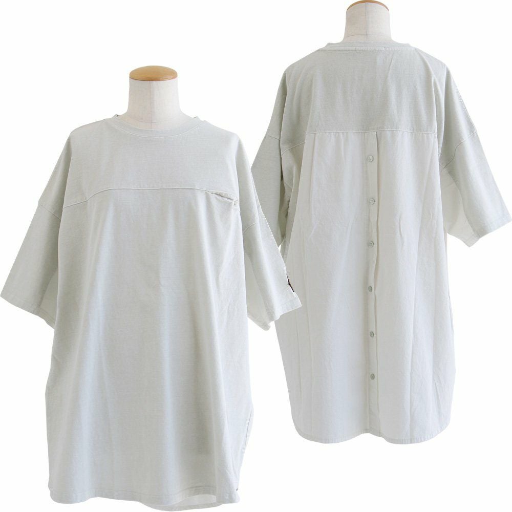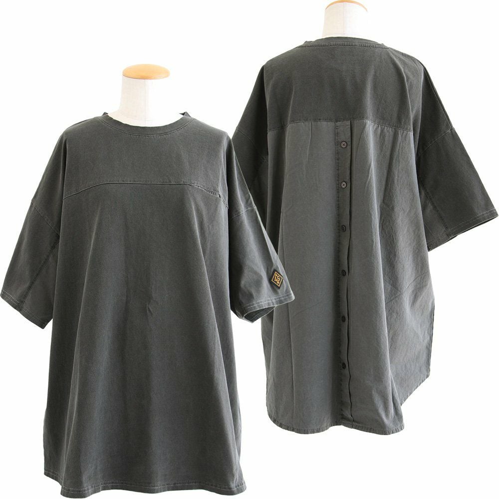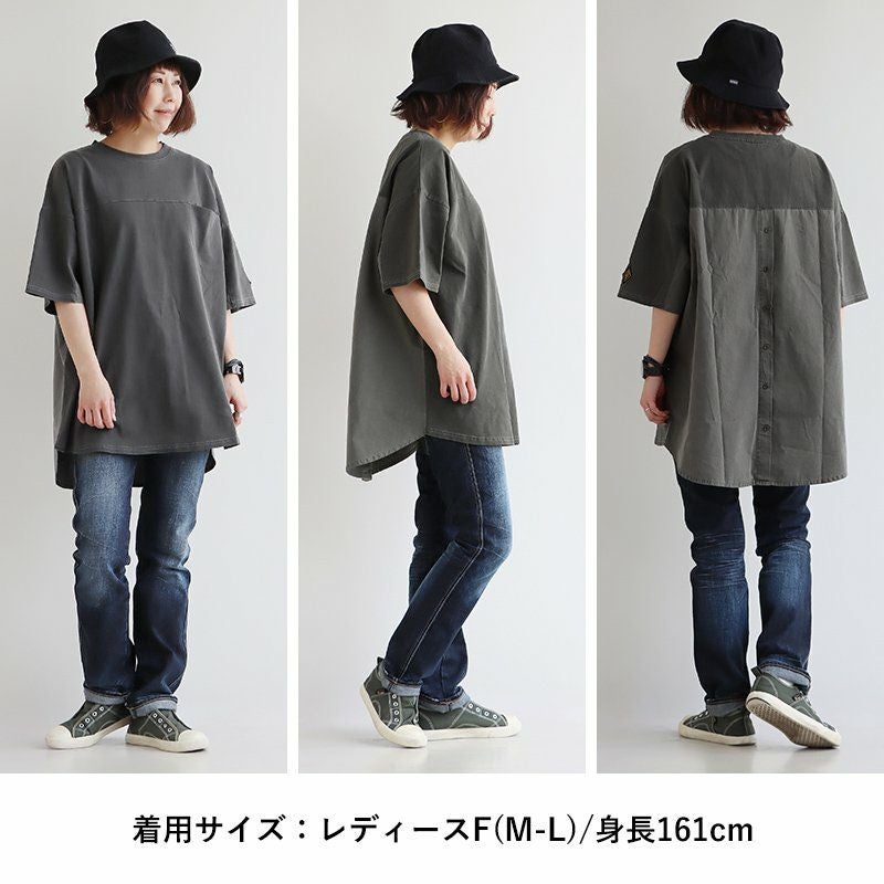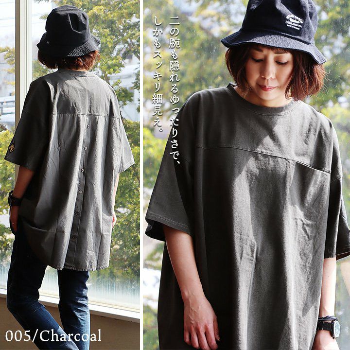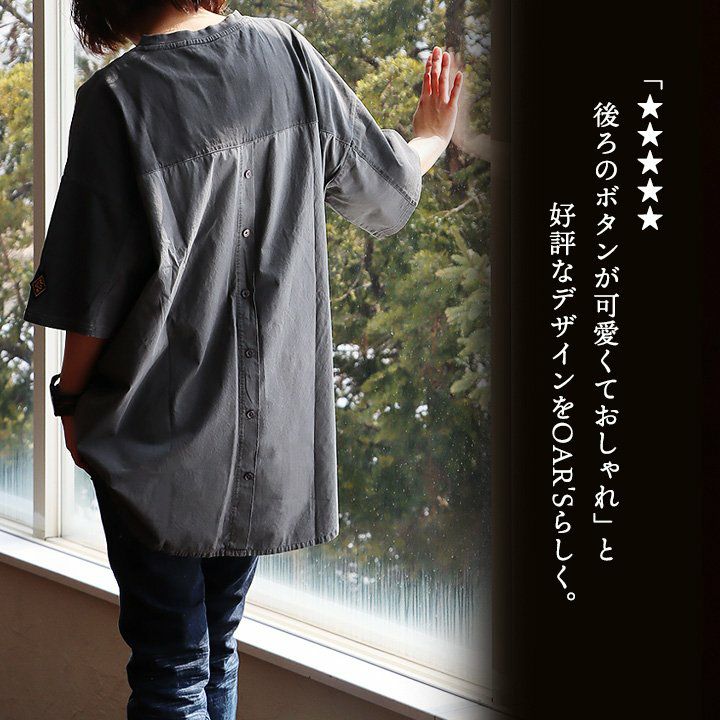 隠したいところ隠してくれて、『カッコよく』リラックス。 【メール便50】 大人 かっこいい 五分袖 チュニック すっきり 着痩せ レディース 無地 異素材 切替 ゆったり tシャツ ロング ワイド 綿100% コットン バック ボタン 5分袖 ワンピース 半袖 大人可愛い 大きいサイズ パティ OAR’S オールズ