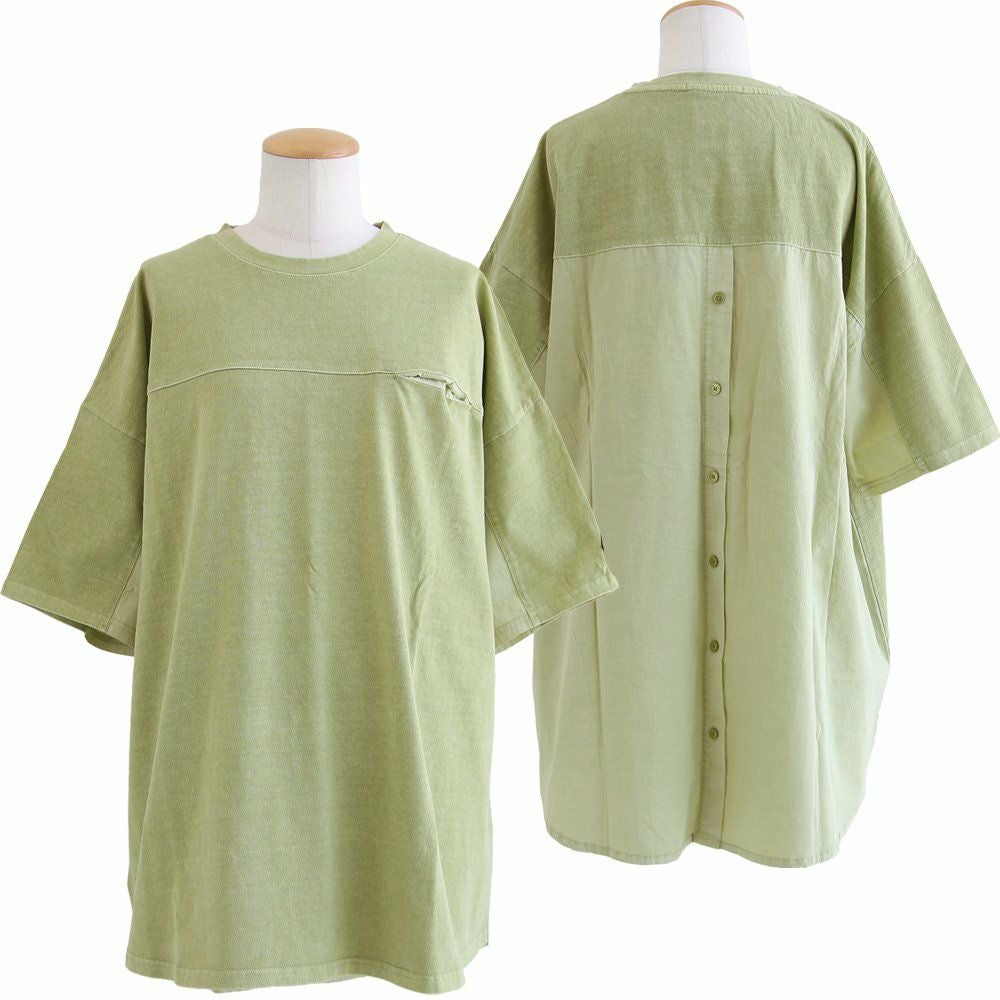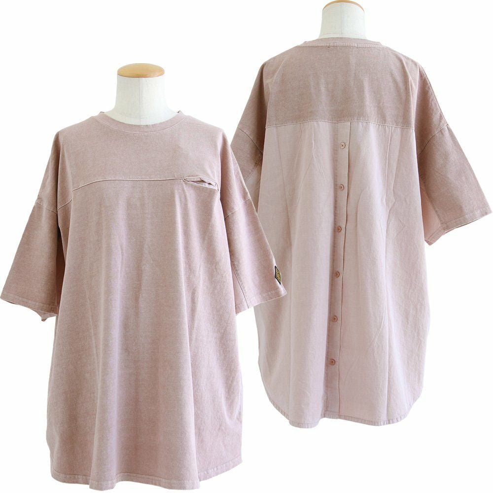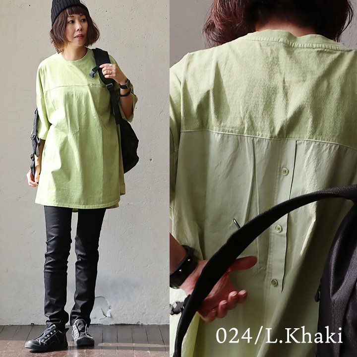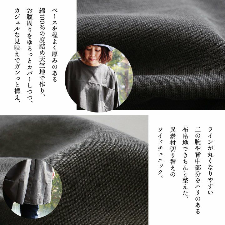隠したいところ隠してくれて、『カッコよく』リラックス。 【メール便50】 大人 かっこいい 五分袖 チュニック すっきり 着痩せ レディース 無地 異素材 切替 ゆったり tシャツ ロング ワイド 綿100% コットン バック ボタン 5分袖 ワンピース 半袖 大人可愛い 大きいサイズ パティ OAR’S オールズ
