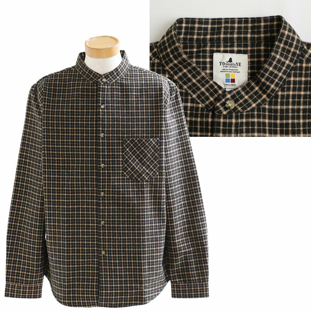 この暖かさは病みつきになるかもしれません。 シャツ 長袖 ネルシャツ バンドカラー チェック フランネル ネルチェック チェックシャツ 「総裏地 フリース ボア」 胸ポケット メンズ レディース 暖かい 秋 冬 40代 50代 TOneontoNE [トーン]