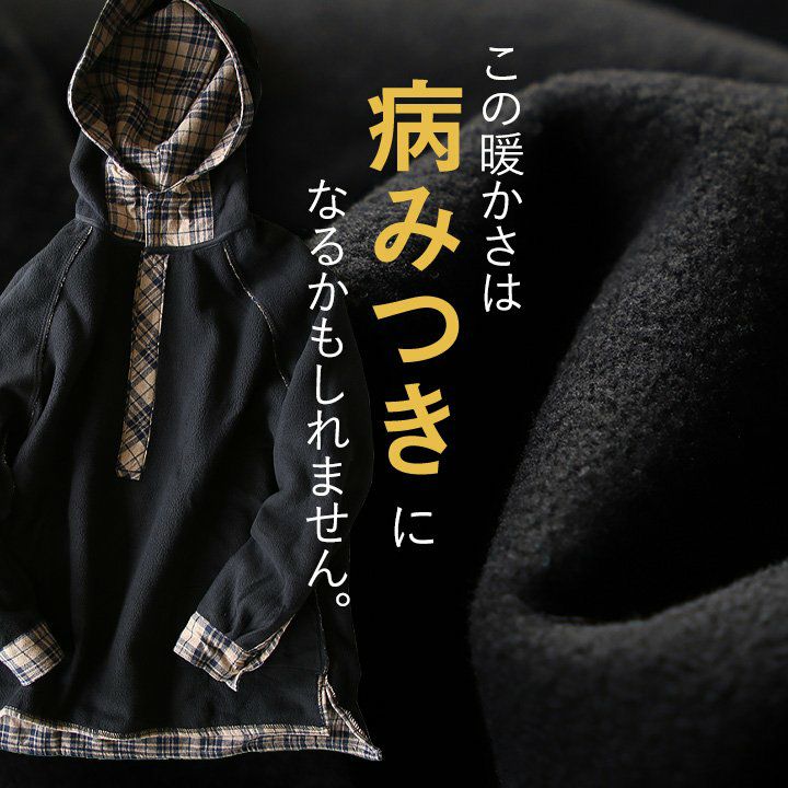 この暖かさは病みつきになるかもしれません。 ネルシャツ 暖かい フリース ボア メンズ レディース パーカー プルオーバー チェックシャツ シャツパーカー ハイネック お尻隠れる Aライン ゆったり ポケット 長袖 カジュアル 総裏地 長袖シャツ 重ね着 ユニセックス 紺 秋 冬 アウター PATY パティ TOneontoNE トーン