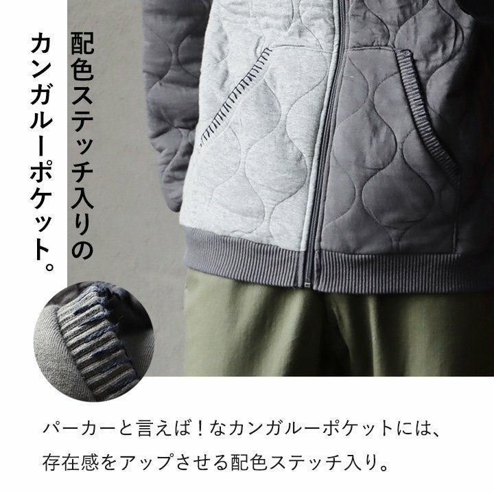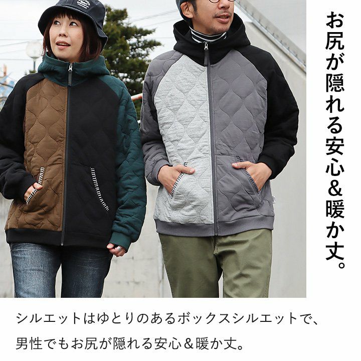 暖かくて、動きやすいから、アクティブに! gym master ジムマスター 暖かい パーカー 長袖 メンズ レディース フーディー 中綿 ジャケット ハイネック フード キルティング キルト 防寒 防風 パイピング 軽量 伸縮性 ストレッチ カジュアル アウトドア パティ