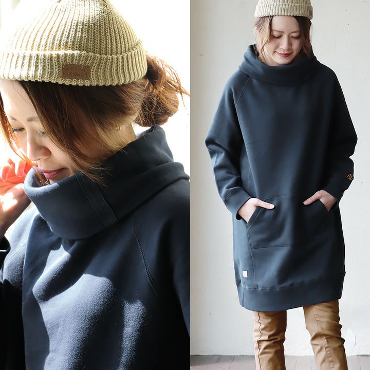 クールな顔立ちに、反比例した楽ちんプルオーバー。 ロング丈 プルオーバー スウェット 長袖 暖かい 裏起毛 軽い 綿100% コットン 着痩せ Aライン スタンドネック 斜め ハーフジップ スエット ハイネック スエット かっこいい 秋 冬 アウター カジュアル バイク アウトドア Mr.Lumberjack