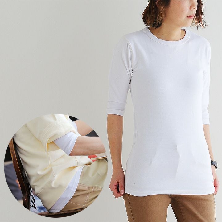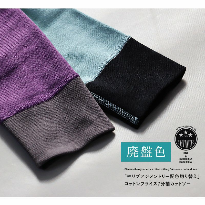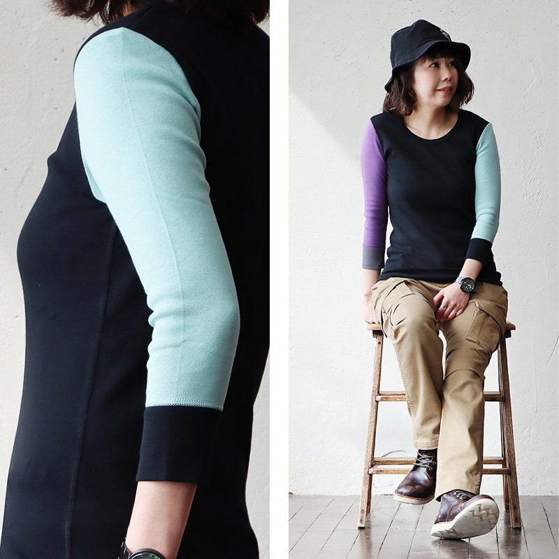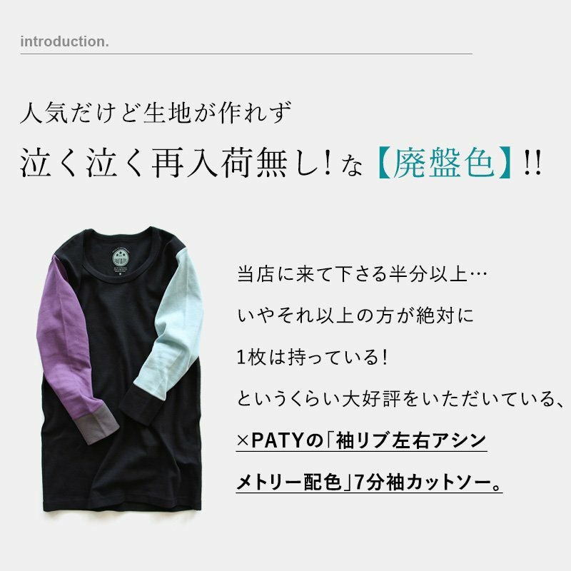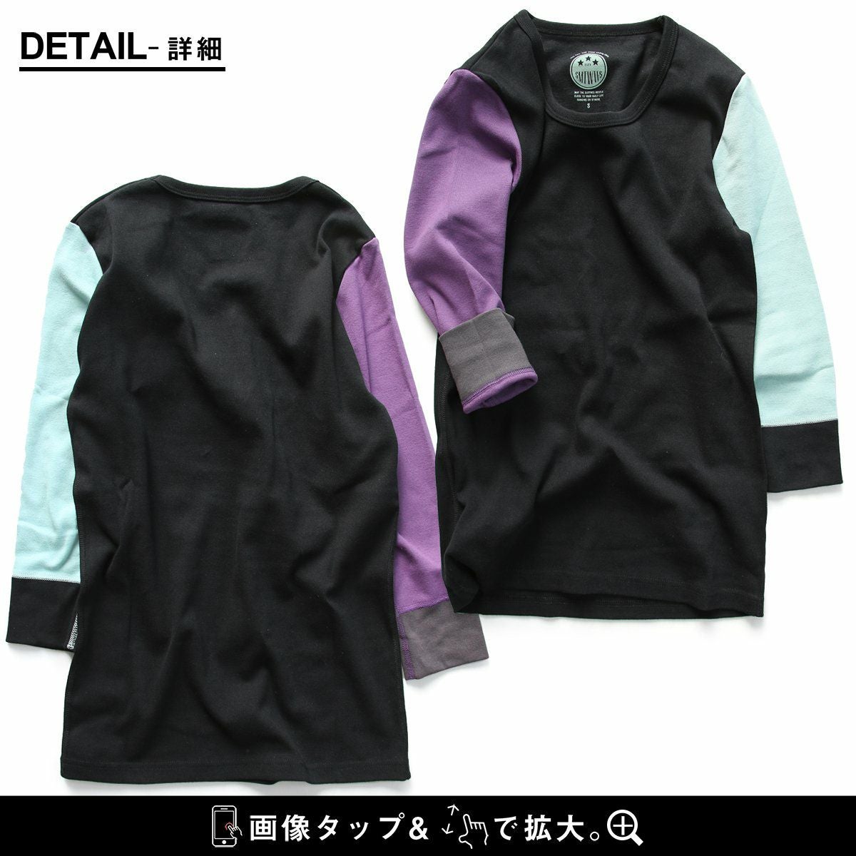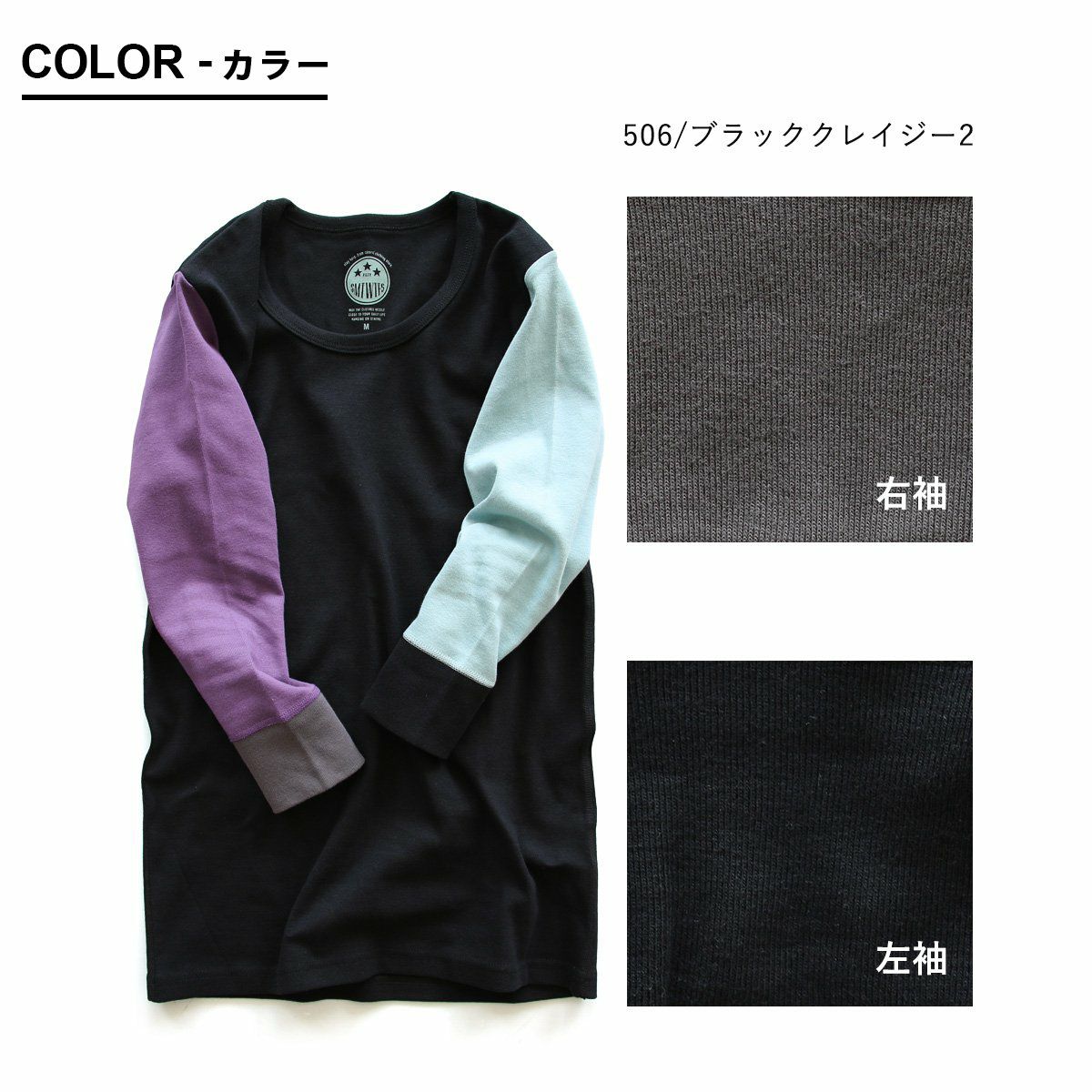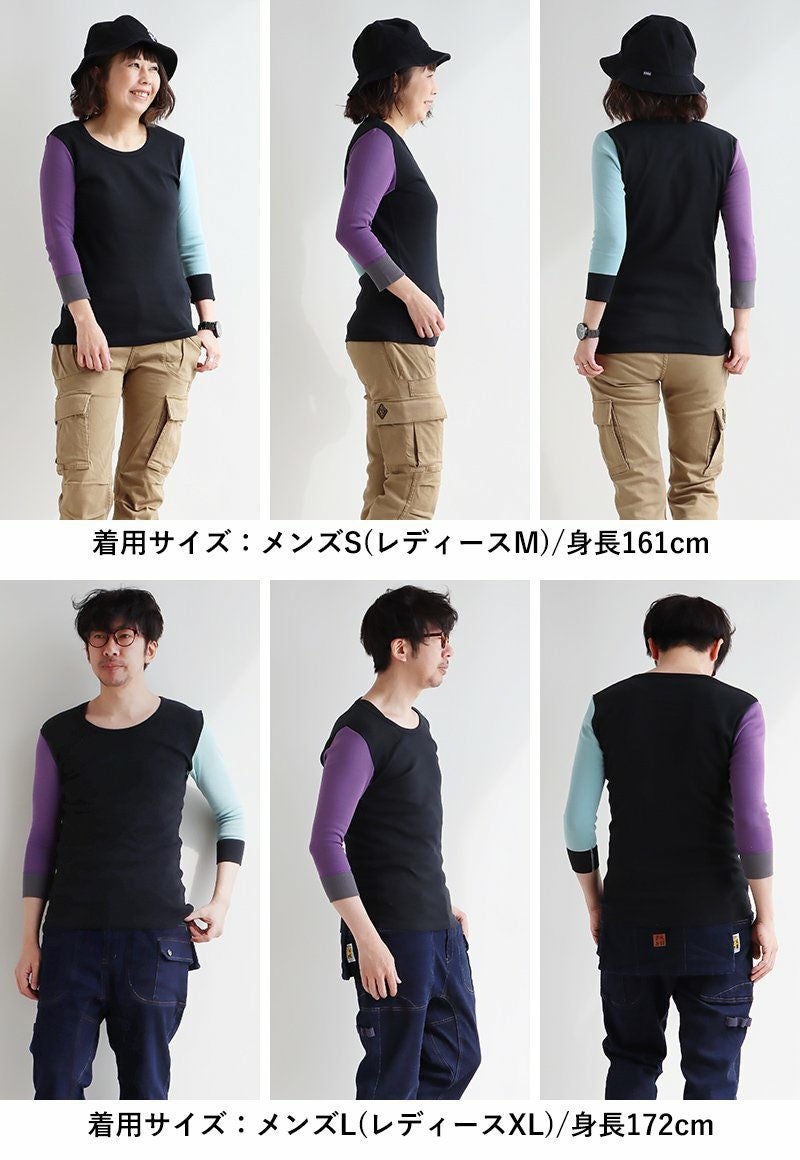 家事も仕事も、1枚でも重ね着でも。すっきり楽々! カットソー 七分袖 ロングtシャツ 重ね着 すっきり 着痩せ フィット しっかり 丈夫 ストレッチ 柔らかい レディース メンズ 綿100% コットン 春 夏 秋 冬 7分袖 ティーシャツ インナーtシャツ ロング丈 クレイジー 配色 リブ トップス 洗濯に強い PATY パティ