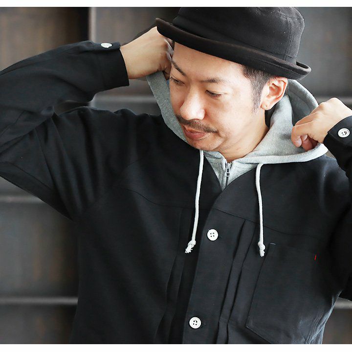 フード無しのスッキリ見えマンパー。 KRIFF MAYER Mr.Lumberjack マウンテンパーカー メンズ レディース ノーカラー フード無し ストレッチ 裏メッシュ リップストップ ロゴ刺繍 袖ゴム 微撥水 軽い 防汚 防風 家庭洗濯 マンパー 黒 大きい PATY パティ クリフメイヤー