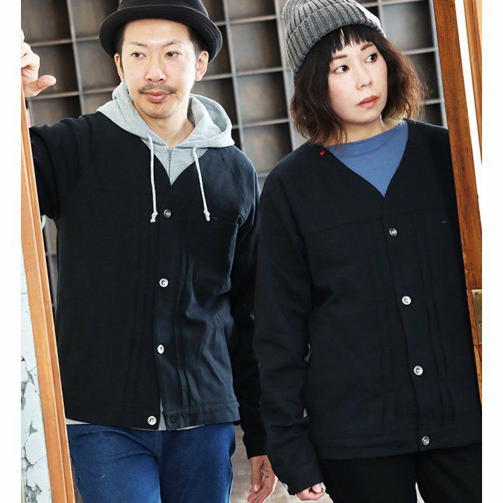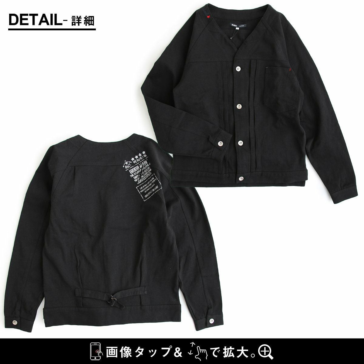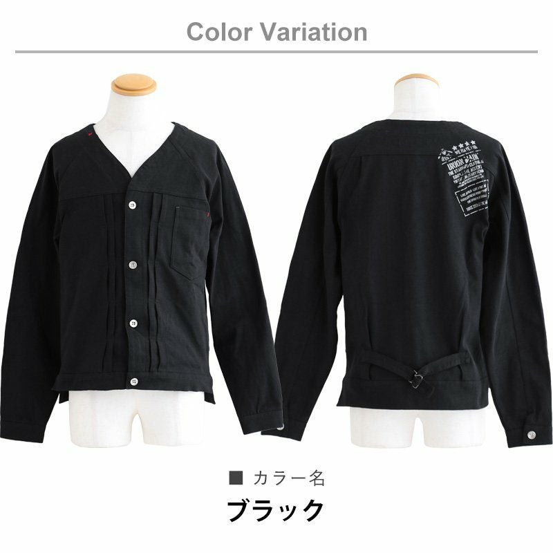 ★★★★★ 襟がないデザインなのがまたカッコいい。 Gジャン デニムジャケット ノーカラー レディース メンズ 長袖 アウター ライトアウター コットン 綿100% 春 秋 春服 秋服 バックプリント 大きいサイズ カジュアル 大人 カーディガン ブランド 星 刺繍 黒 ブラック 無地 おしゃれ かっこいい PATY パティ BLUETO ブルート