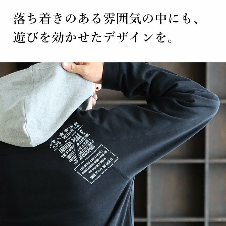 意外となかったのが「重ね着で使える」パーカー。 パーカー 重ね着 インナーパーカー ロング丈 長袖 レディース メンズ 柔らかい 綿100% コットン しっかり 丈夫 ストレッチ インナー 洗濯に強い トップス クレイジー アシメ 配色 リブ ボーダー 黒 ロングTシャツ 秋 冬 春 大人 カジュアル PATY パティ
