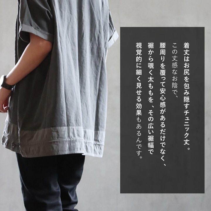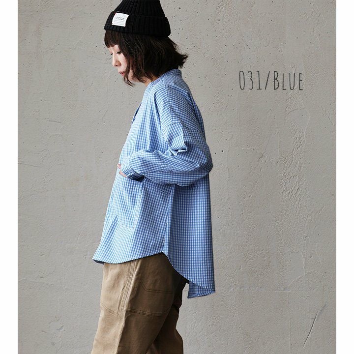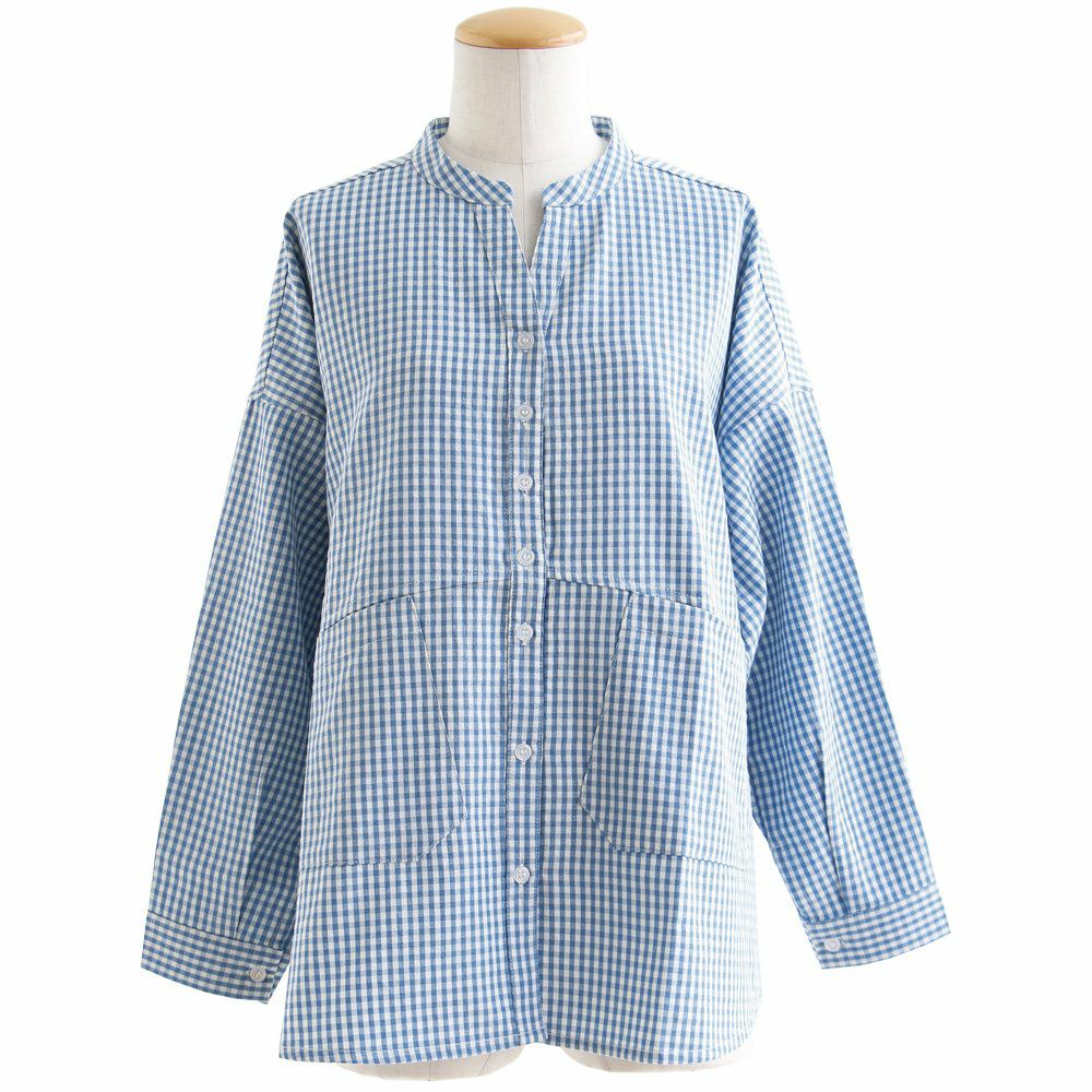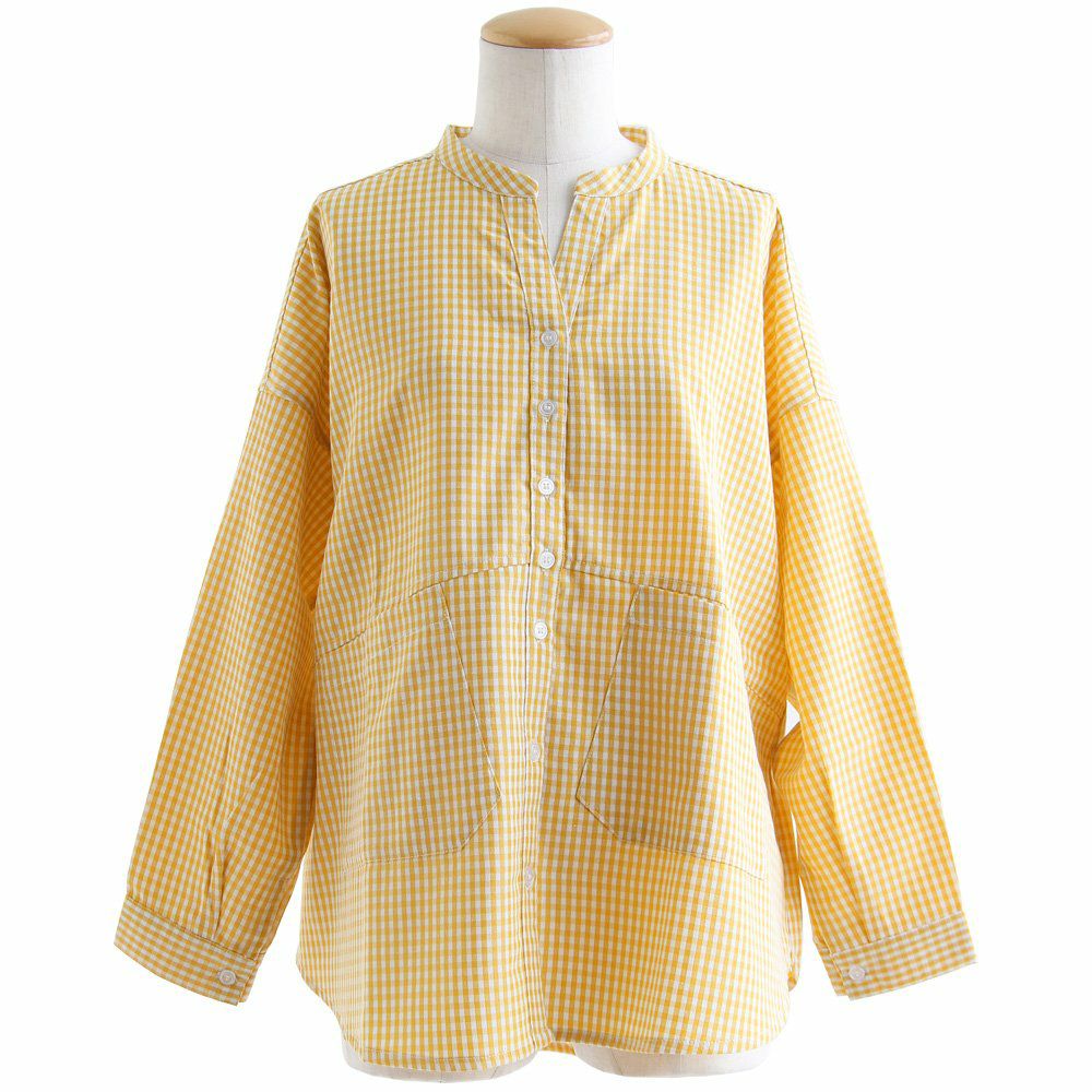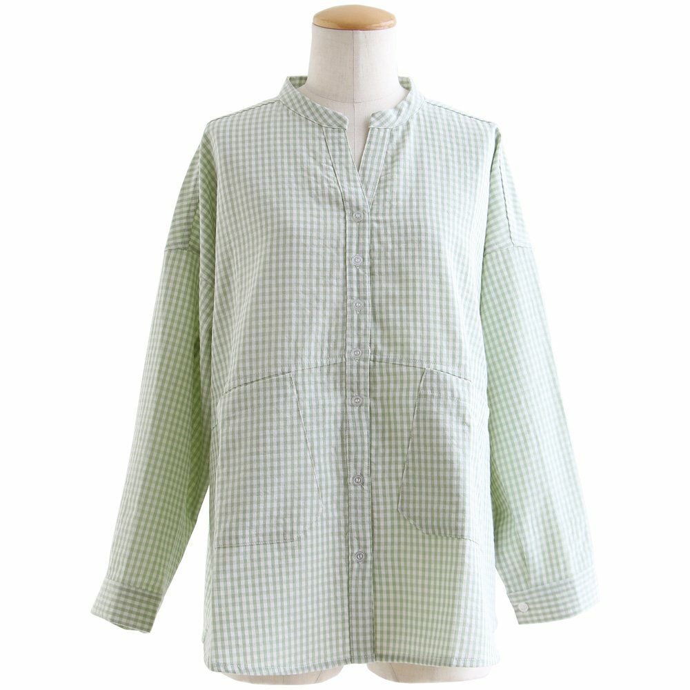わたしには、「さらっと着られる『着痩せ』シャツ」がある。 シャツ チュニック 長袖 レディース スタンド スキッパーネック ツイル ギンガム チェック 着痩せ 裁断 お尻が隠れる フレア ワイド 変則ピッチボタン 軽い 無地 パティ SAIL セイル