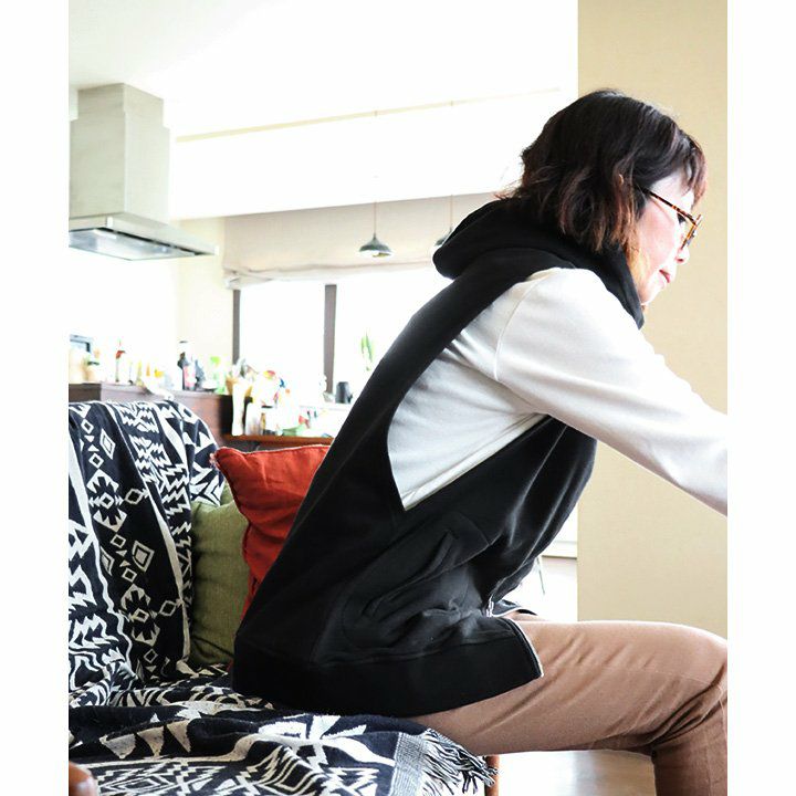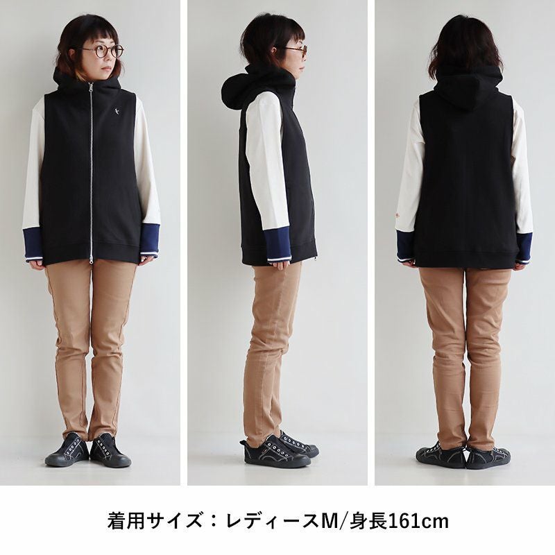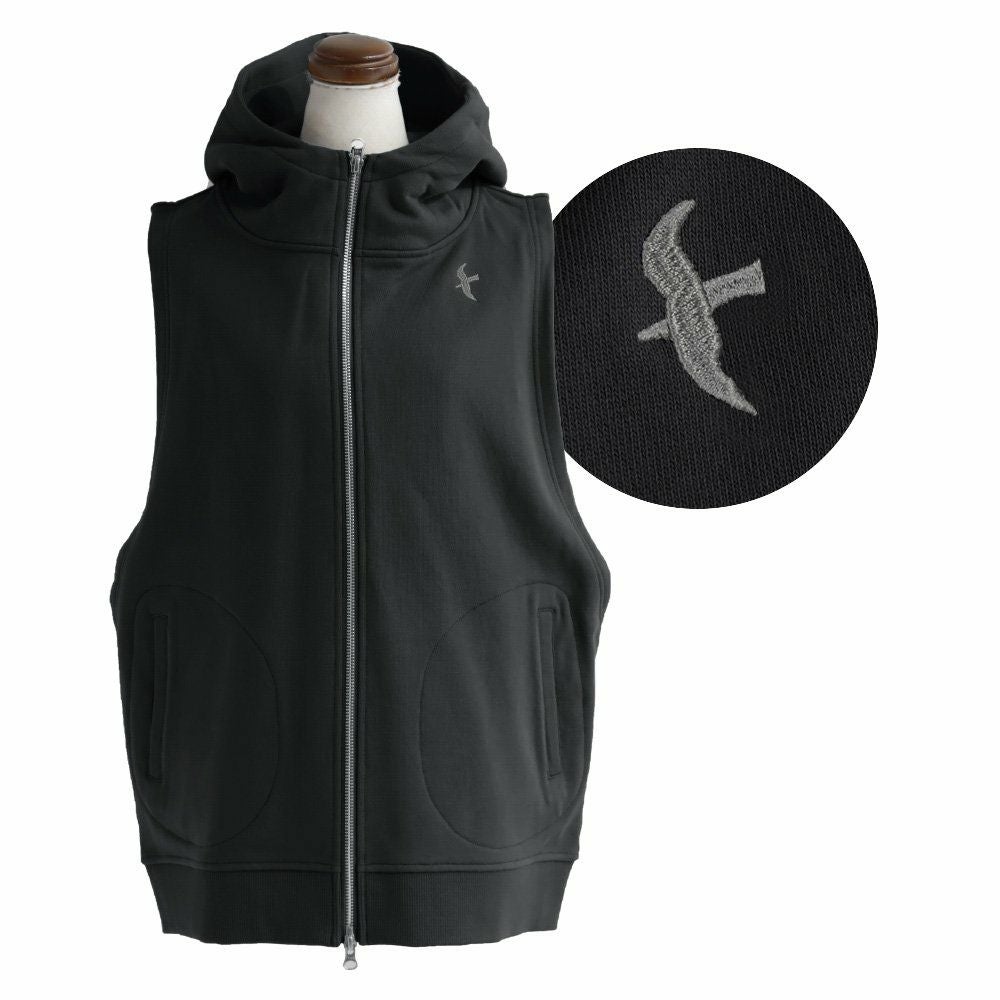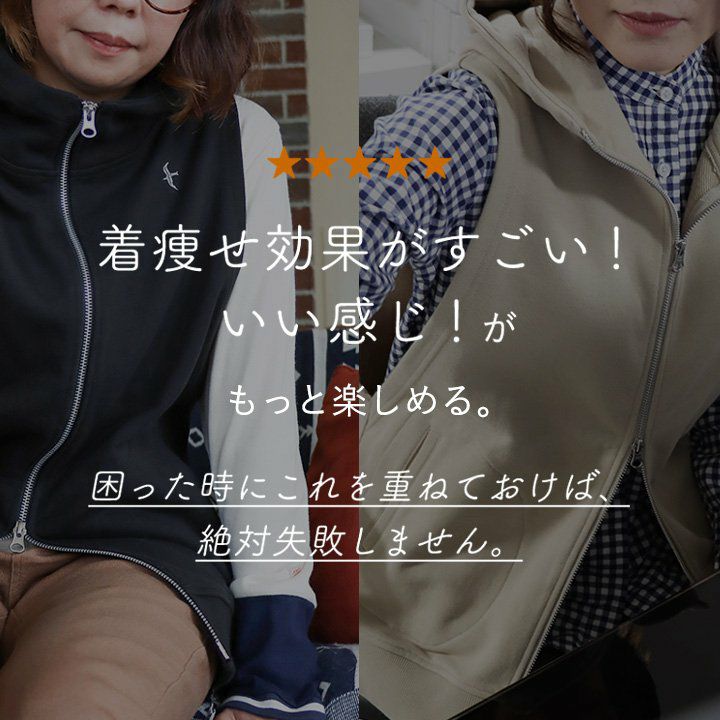 困った時に、これを重ねておけば絶対失敗しません。 ベスト パーカー レディース ハイネック ダブルジップアップ 前開き 裏毛 綿100% ツバメ 刺繍 ポケット お尻隠れる ロング ロングベスト レディースベスト スウェットベスト 防寒 無地 着痩せ 重ね着 ゆったり 大き目 大人 黒 カジュアル PATY パティ SAIL セイル