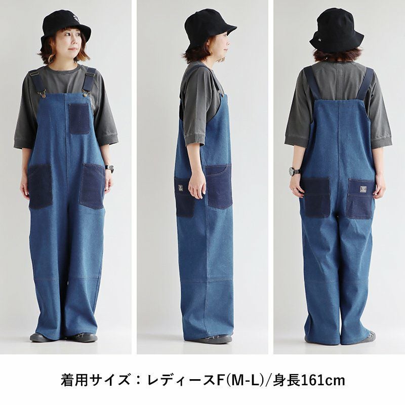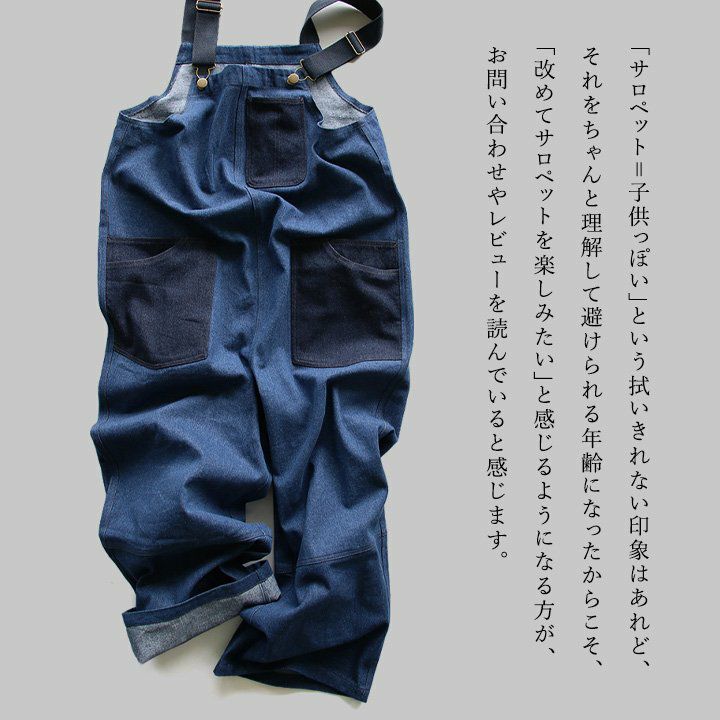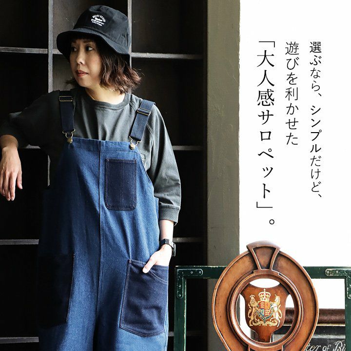 選ぶなら、シンプルだけど、遊びを利かせた「大人感サロペット」。 デニム サロペット サロペ オーバーオール オールインワン ボトムス レディース つなぎ ユーズド加工 メンズライク 大きいサイズ ロング 切り替え 体型カバー シンプル おしゃれ かっこいい BLUETO ブルート