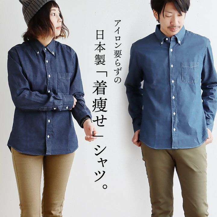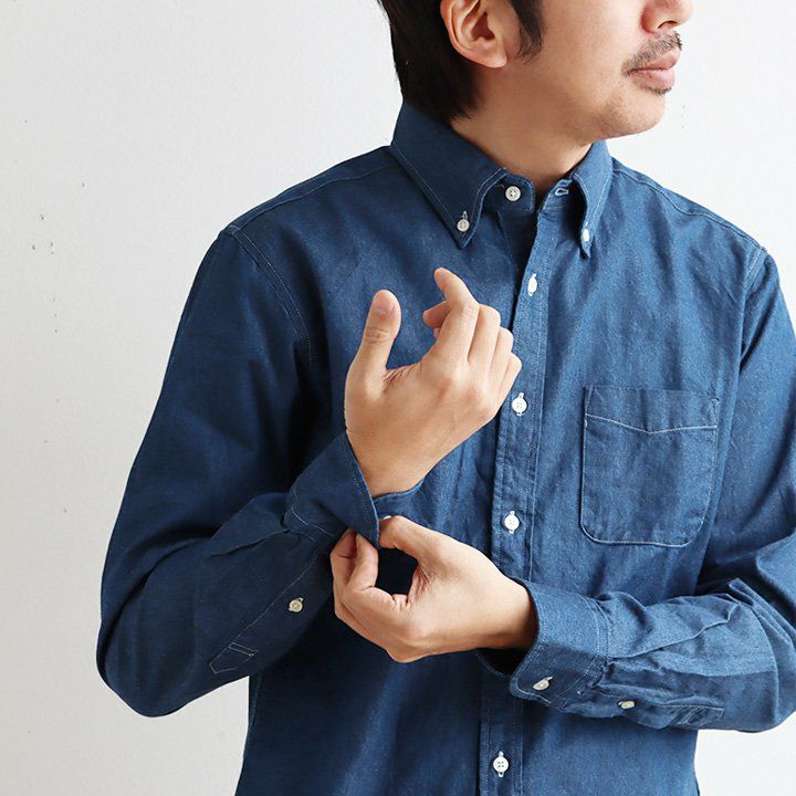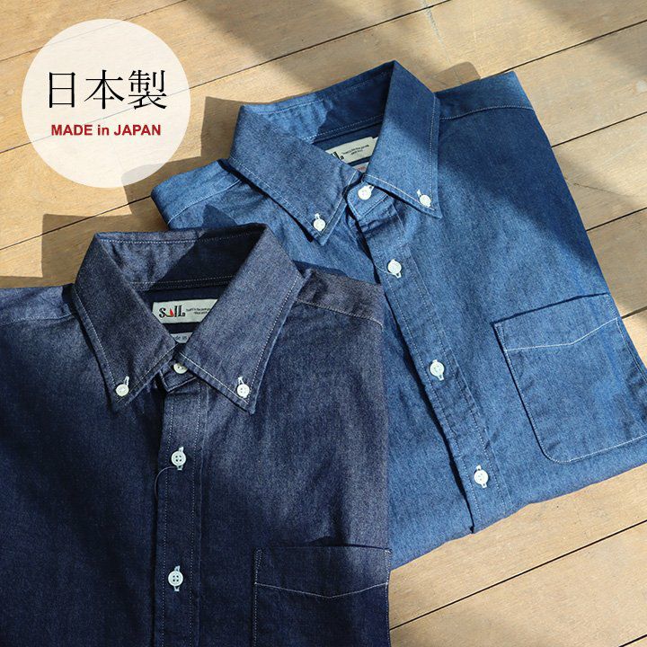 アイロン要らずの日本製「着痩せ」シャツ。 デニムシャツ メンズ レディース 長袖 日本製 コットン 綿100% シャツ ノーアイロン ボタンダウンシャツ ショート丈 デニム 長袖シャツ ワンポイント つばめ 刺繍 トップス ブランド 春 夏 秋 冬 オシャレ かっこいい ギフト ビジネス PATY パティ SAIL セイル