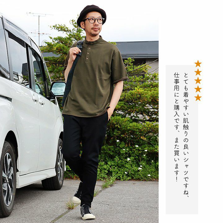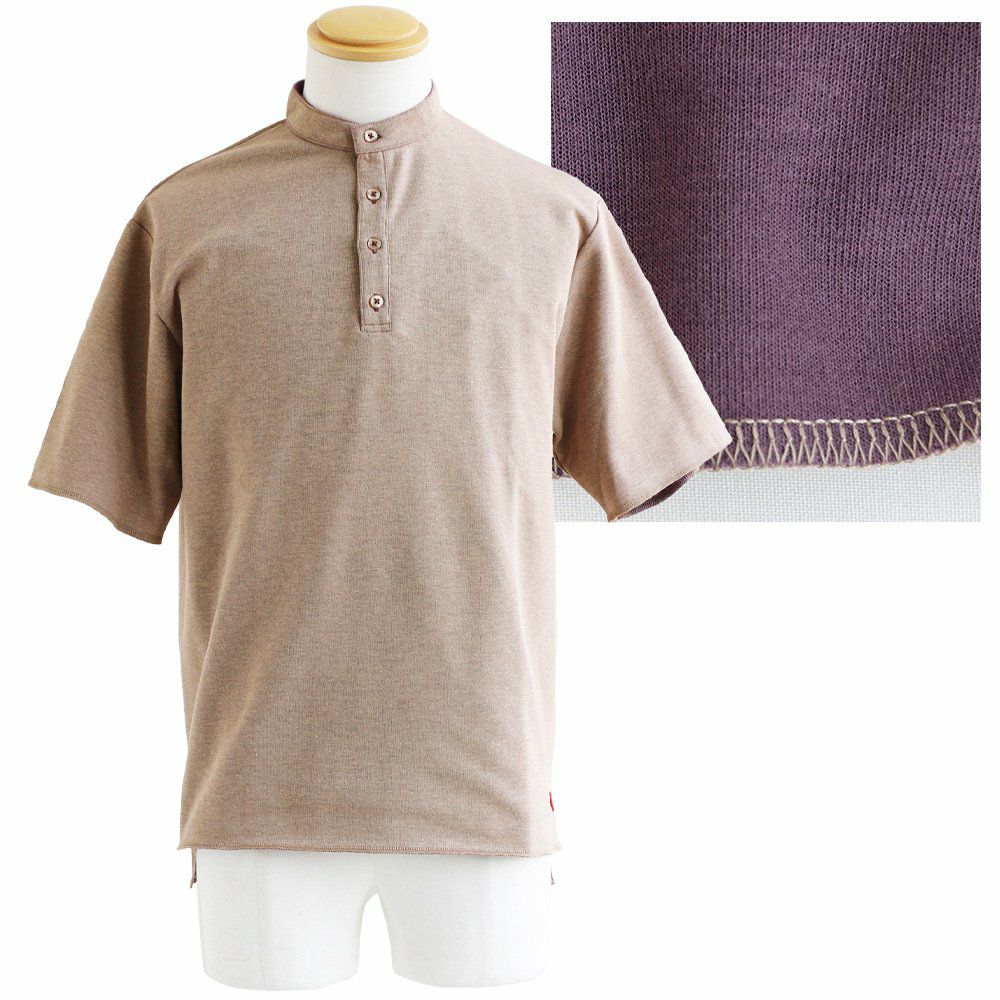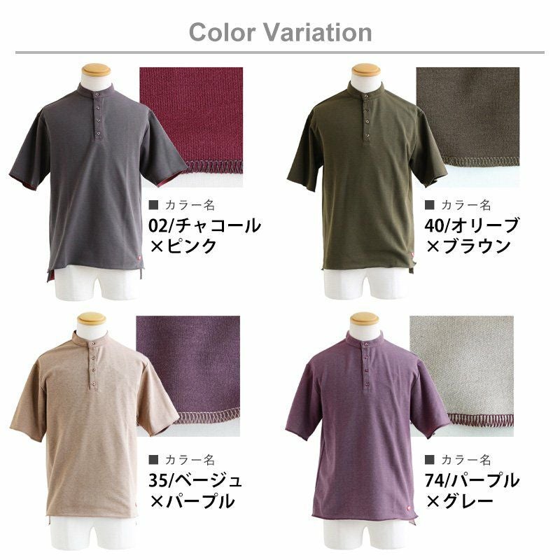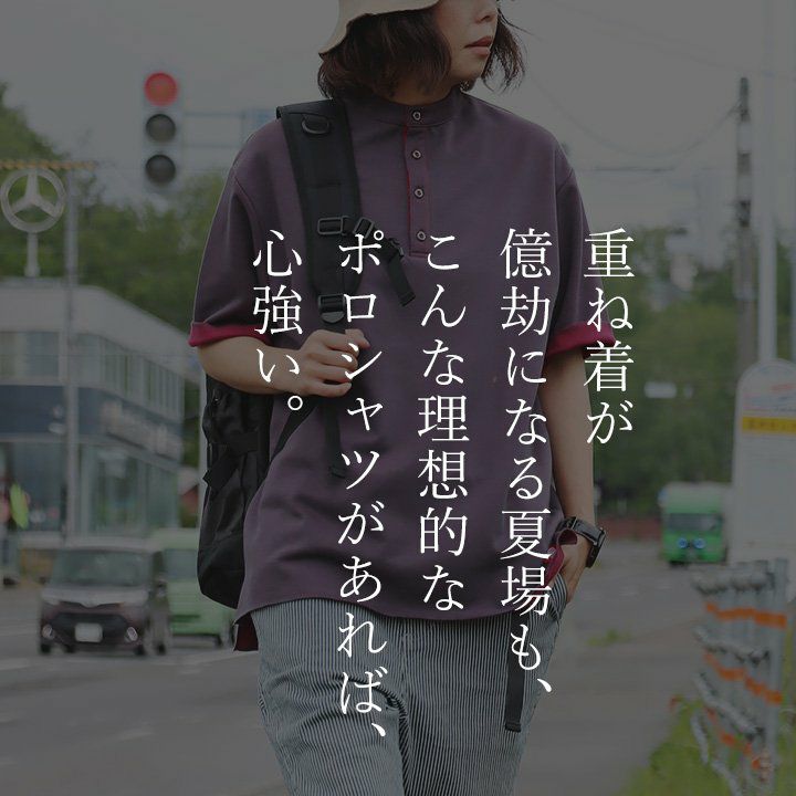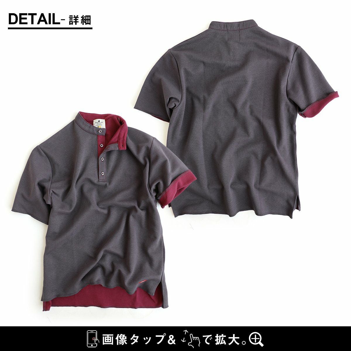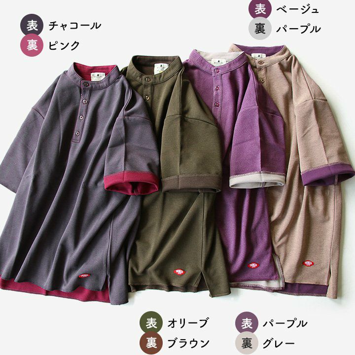 袖からチラリ。このくらいがちょうどいい! ポロシャツ メンズ レディース 半袖 ワイド バンドカラー スタンドネック 表裏 配色 ダブルフェイス ストレッチ 無地 サイドスリット 体型カバー おしゃれ シャツ ヘンリー ゴルフ 仕事 ロング 大きいサイズ 夏 夏服 大人 カジュアル PATY パティ TOneontoNE トーン