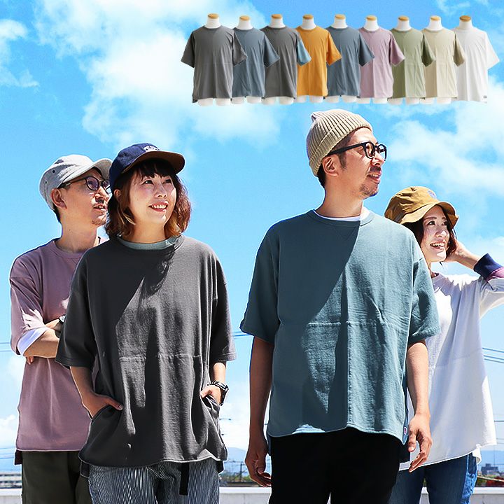 スッキリ見せるなら、実は「横」より『縦』!? Tシャツ レディース メンズ 半袖 綿100% コットン ワイド ビッグtシャツ ポケット 付き ロング ゆったり 綿100% コットン 夏 しっかり 丈夫 おしゃれ ぐるぐる ワンポイント 刺繍 五分袖 無地 シンプル ギフト プレゼント PATY パティ Mr.Lumberjack
