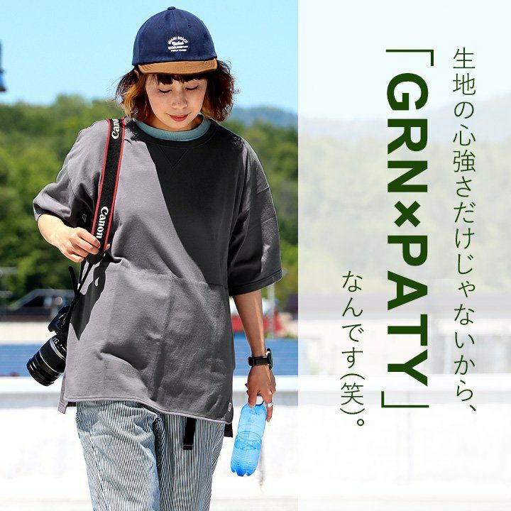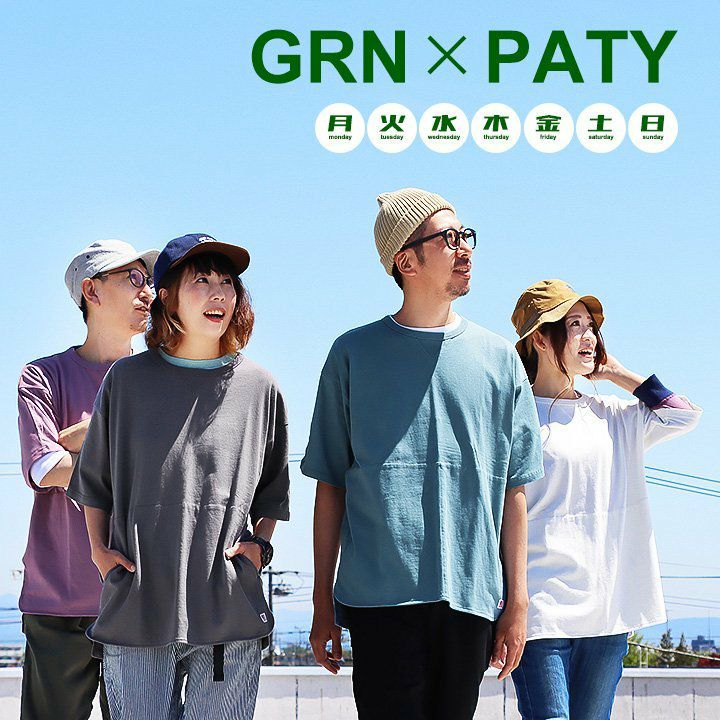 月火水木…マイニチTEE! Tシャツ レディース メンズ 半袖 ゆるTシャツ USAコットン 綿100% ロング丈 ポケット付き サイドスリット ガゼット ビッグtシャツ ティーシャツ クルーネック トップス 五分袖 無地T 春 夏 大きいサイズ 大人 カジュアル PATY パティ grn×PATY パティ コラボ